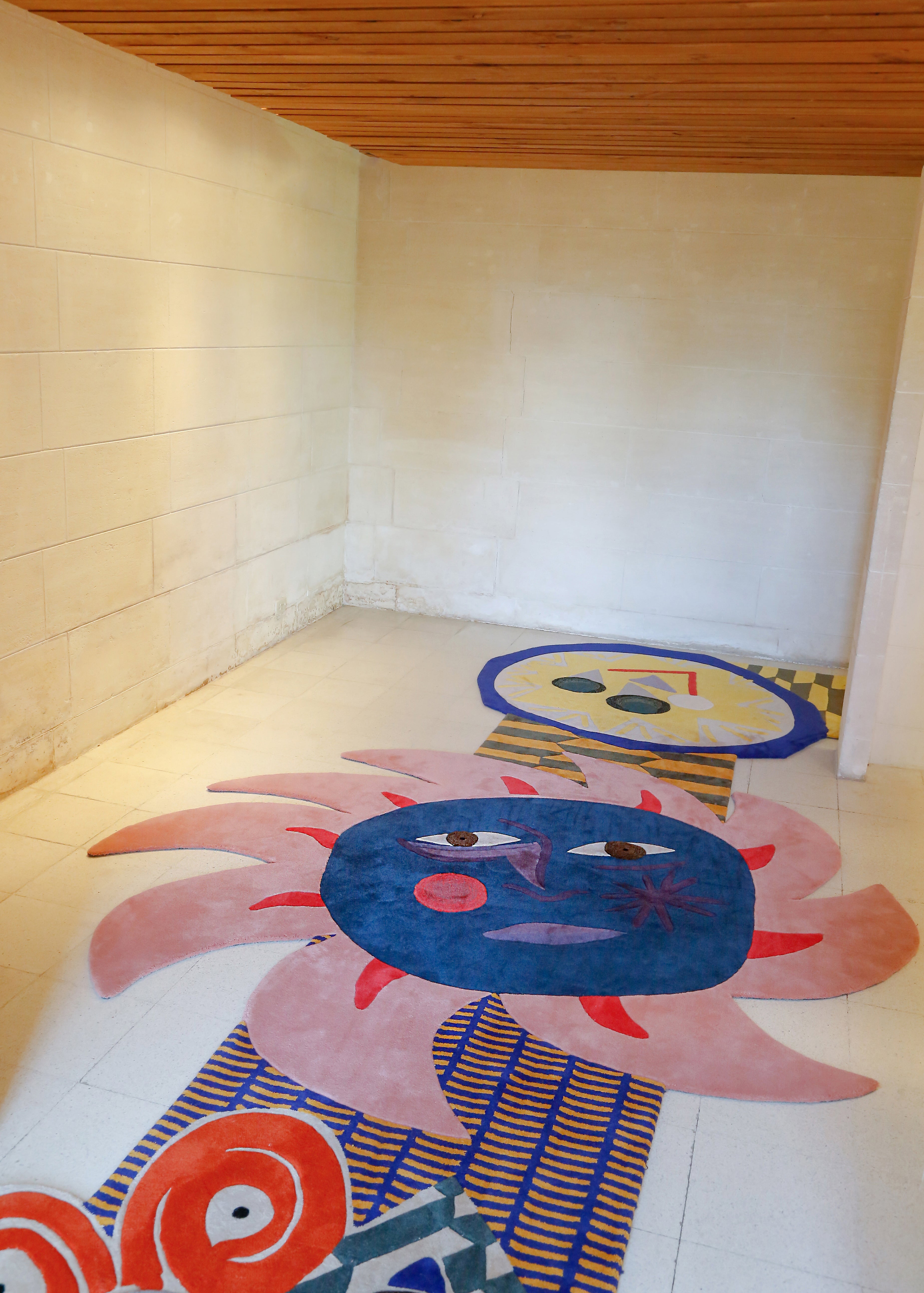 From the initial conversation back in 2019, the idea for the project grew through countless meetings. The synergy and excitement between Brendan, Alex and Georgie enabled the concept to evolve and the singular rug morphed into an ambitious immersive installation, with accompanying clocks to mirror the rug’s motifs.