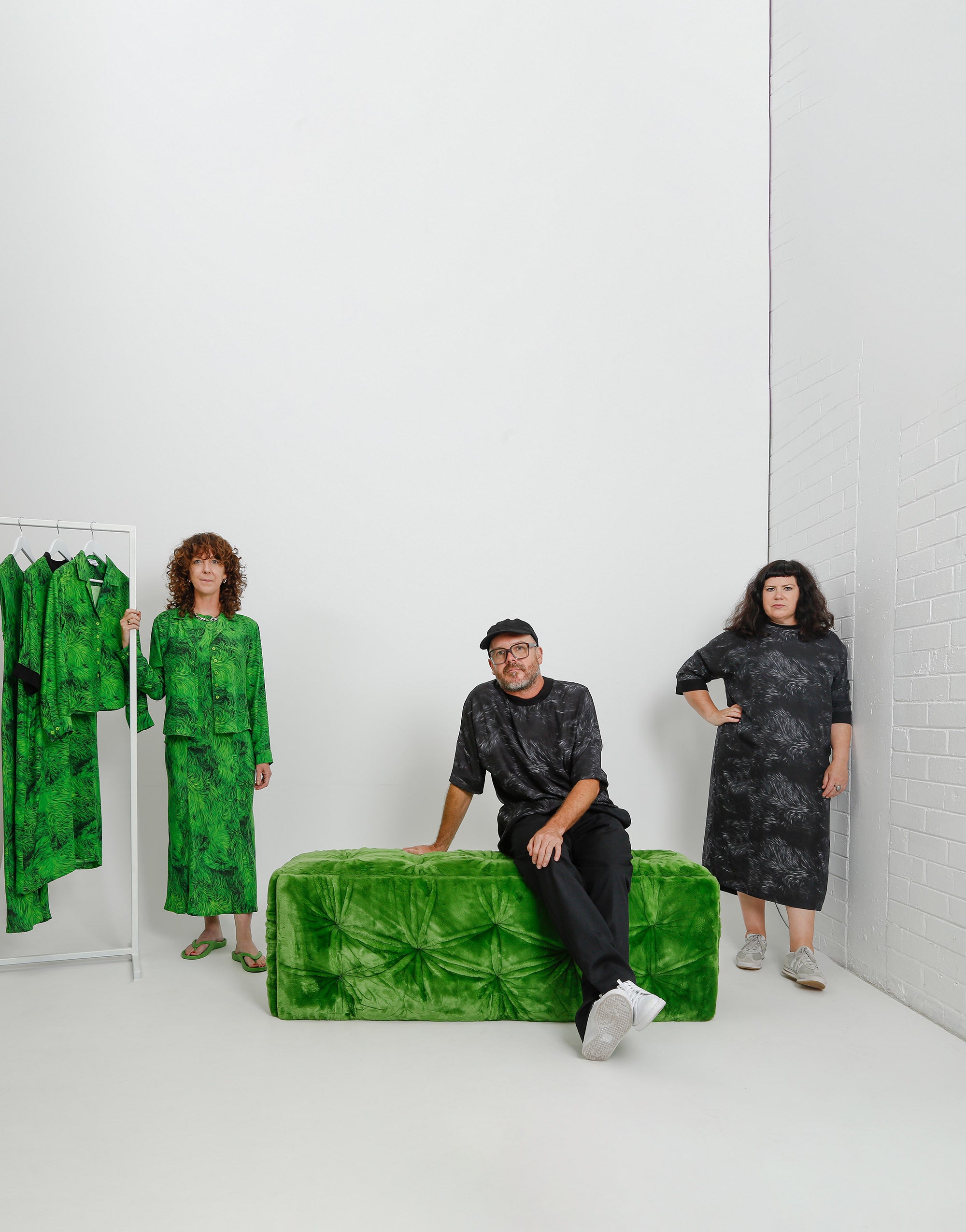 The green fur was initially created for the Bella commission at the Museum of Contemporary Art in Sydney in 2015, as part of the Koala Room, designed for children with disabilities to engage with art through play. Temin sought a green that referenced idealized grass or flooring, drawing inspiration from the luxurious Prada green velvet seats in their stores. She aimed for a vibrant, animated tone to complement the room’s sky blue hues. In contrast, the black fur used in her My Monument works evokes themes of mourning, remembrance, beauty, and contemplation. Temin’s work often brings together opposing ideas, such as remembrance and play, blending the outside world with the inside. The green and black prints reflect this balance, offering a striking visual dialogue that invites viewers into a space of reflection and engagement.