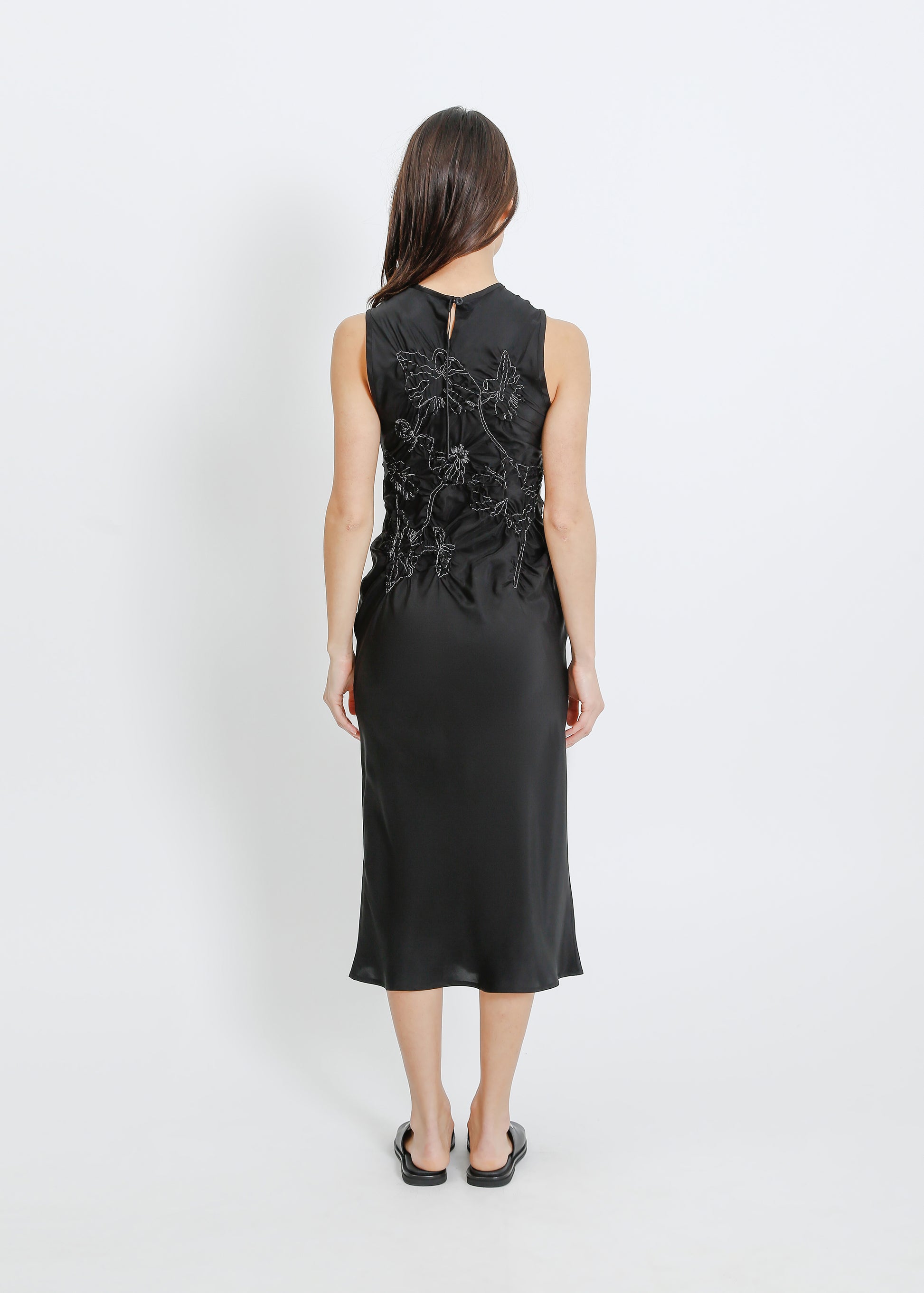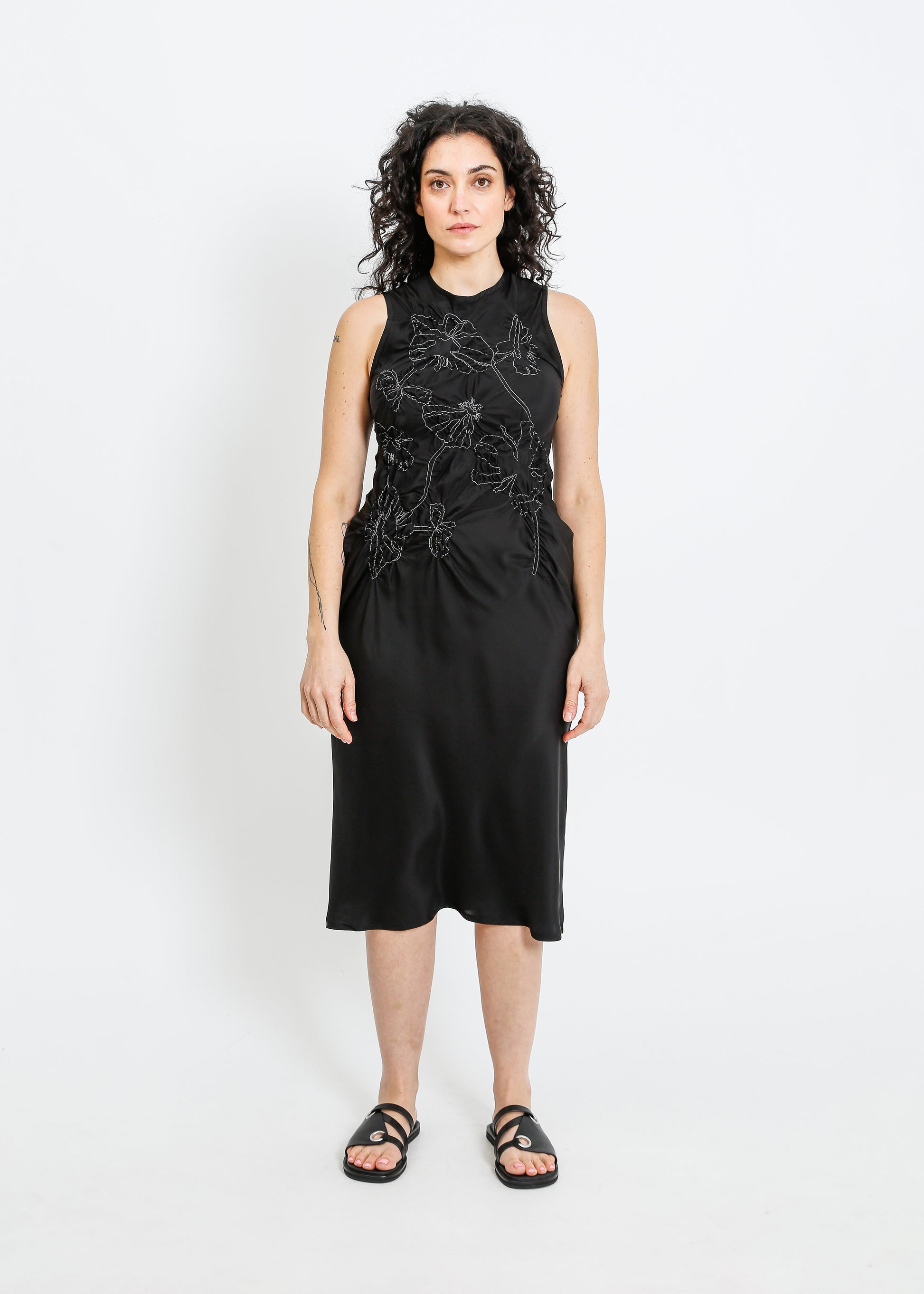 - Sleeveless crew neck dress