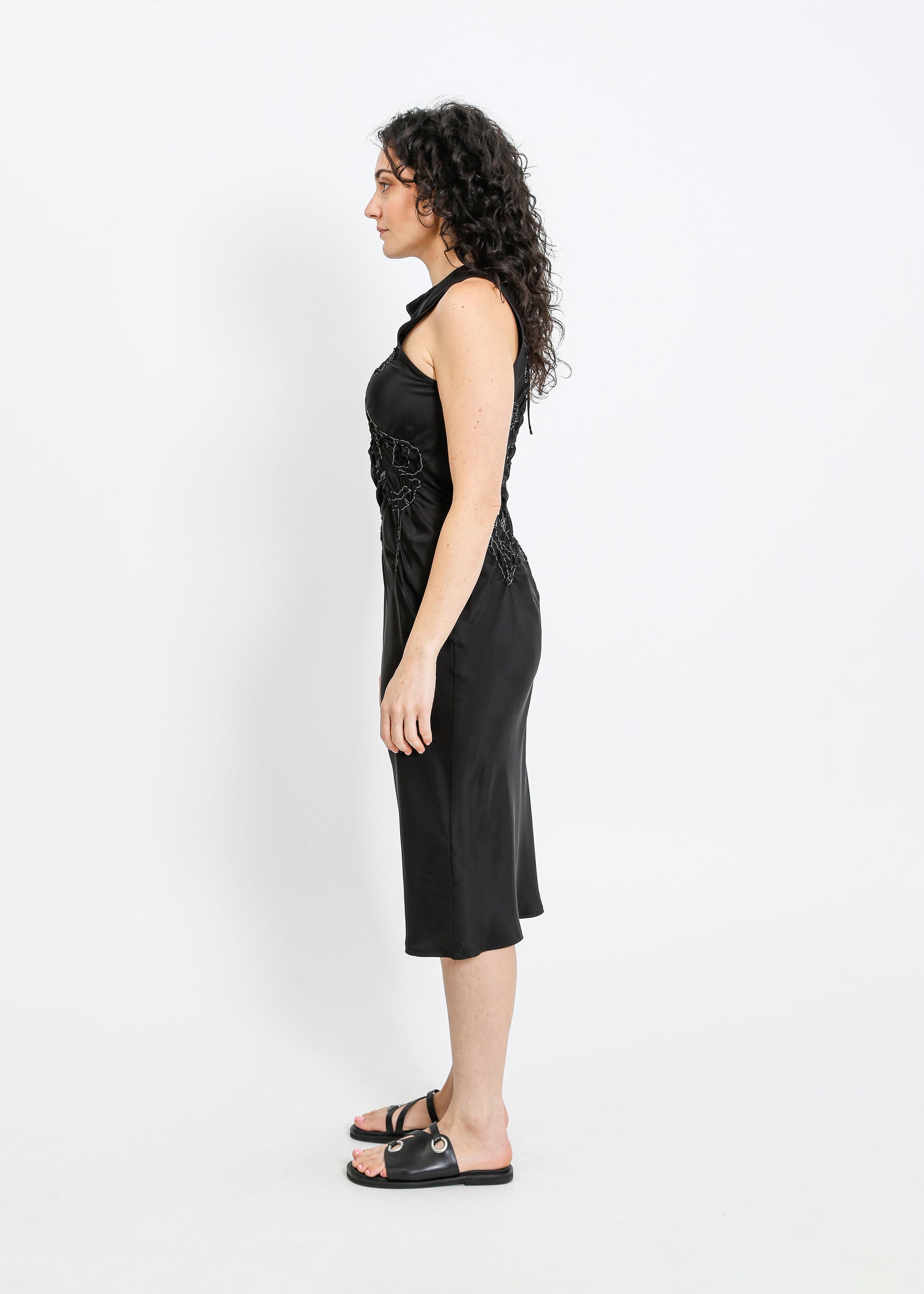 The ALPHA60 Cavalli Dress is a striking party dress crafted from luxurious silk, featuring a beautiful floral shirring design on the bodice. The bias cut flatters the silhouette, while the s...