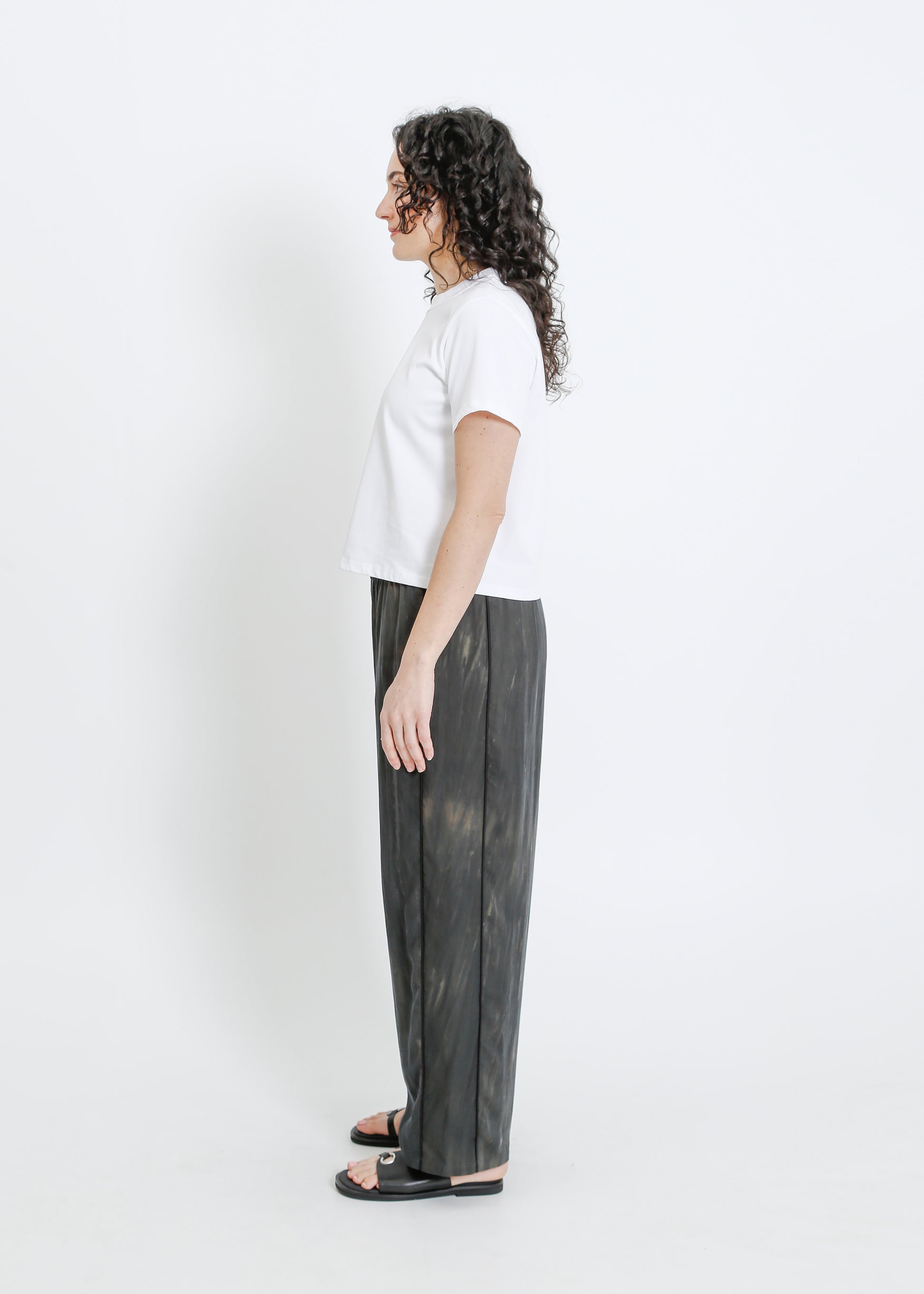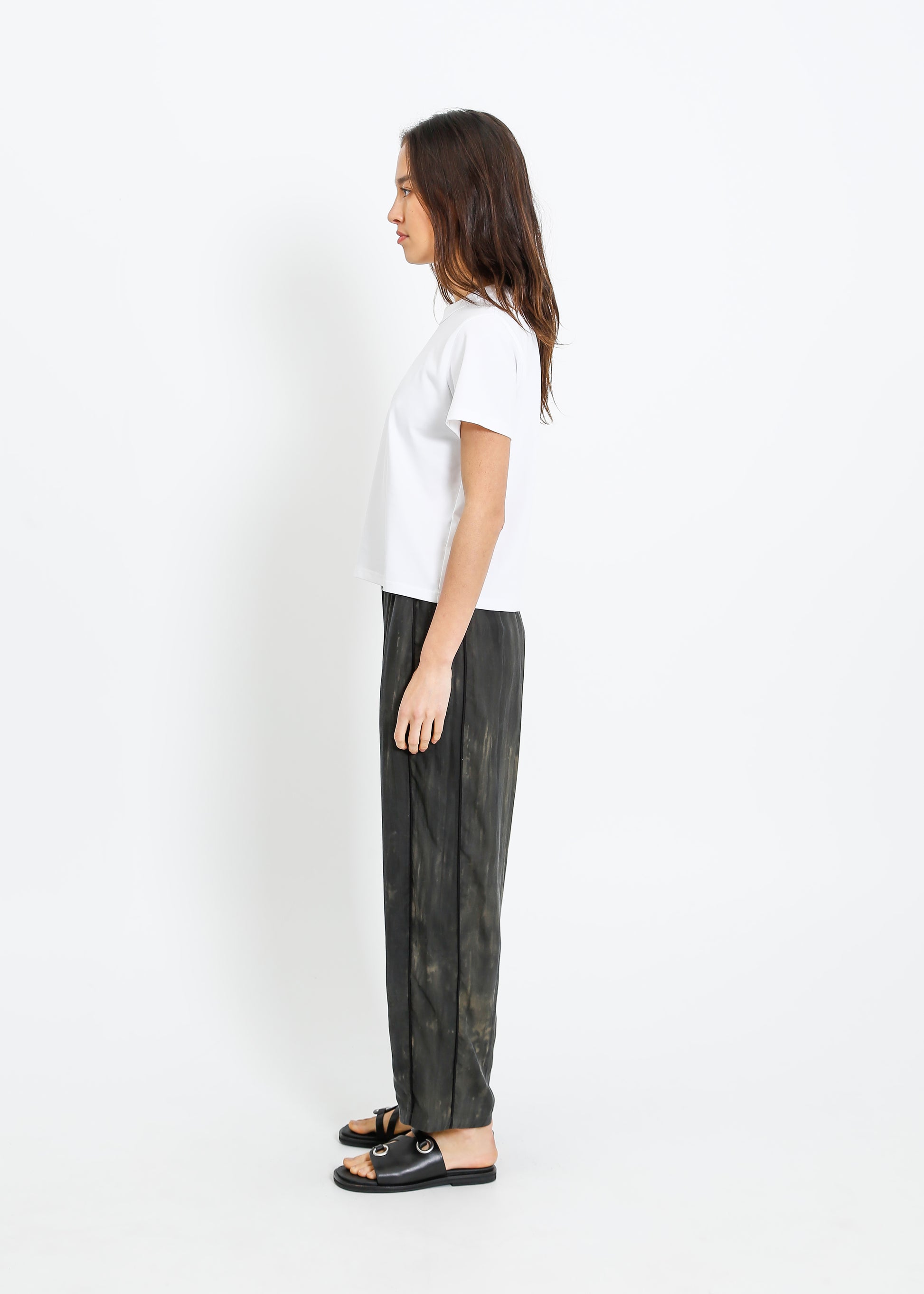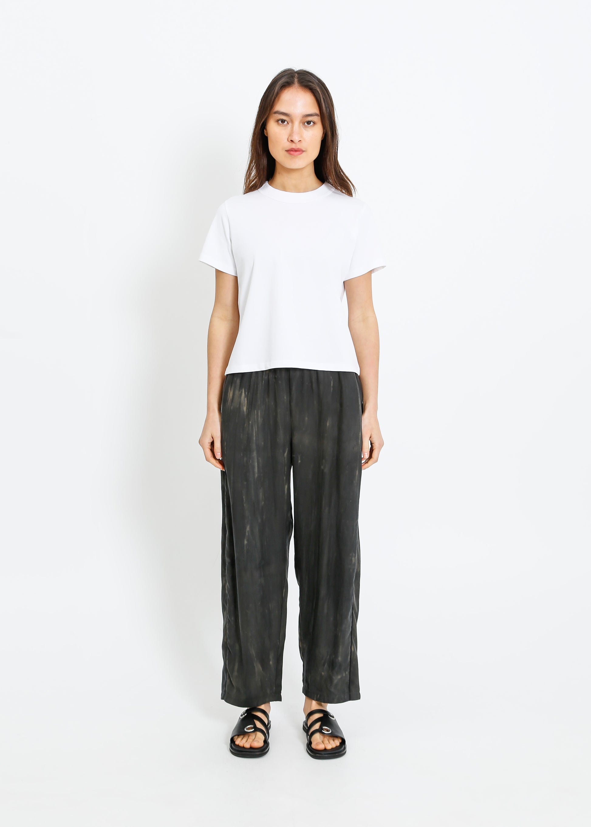 The ALPHA60 Cooper Pant is a modern essential, designed for comfort and style. Featuring a full-length silhouette and a high-rise fit, these pants are crafted from soft Tencel with a subtle drape. Black piping along the design lines adds a refined touch, while the elasticated waistband ensures ease of wear. Perfect for elevating your everyday wardrobe.
