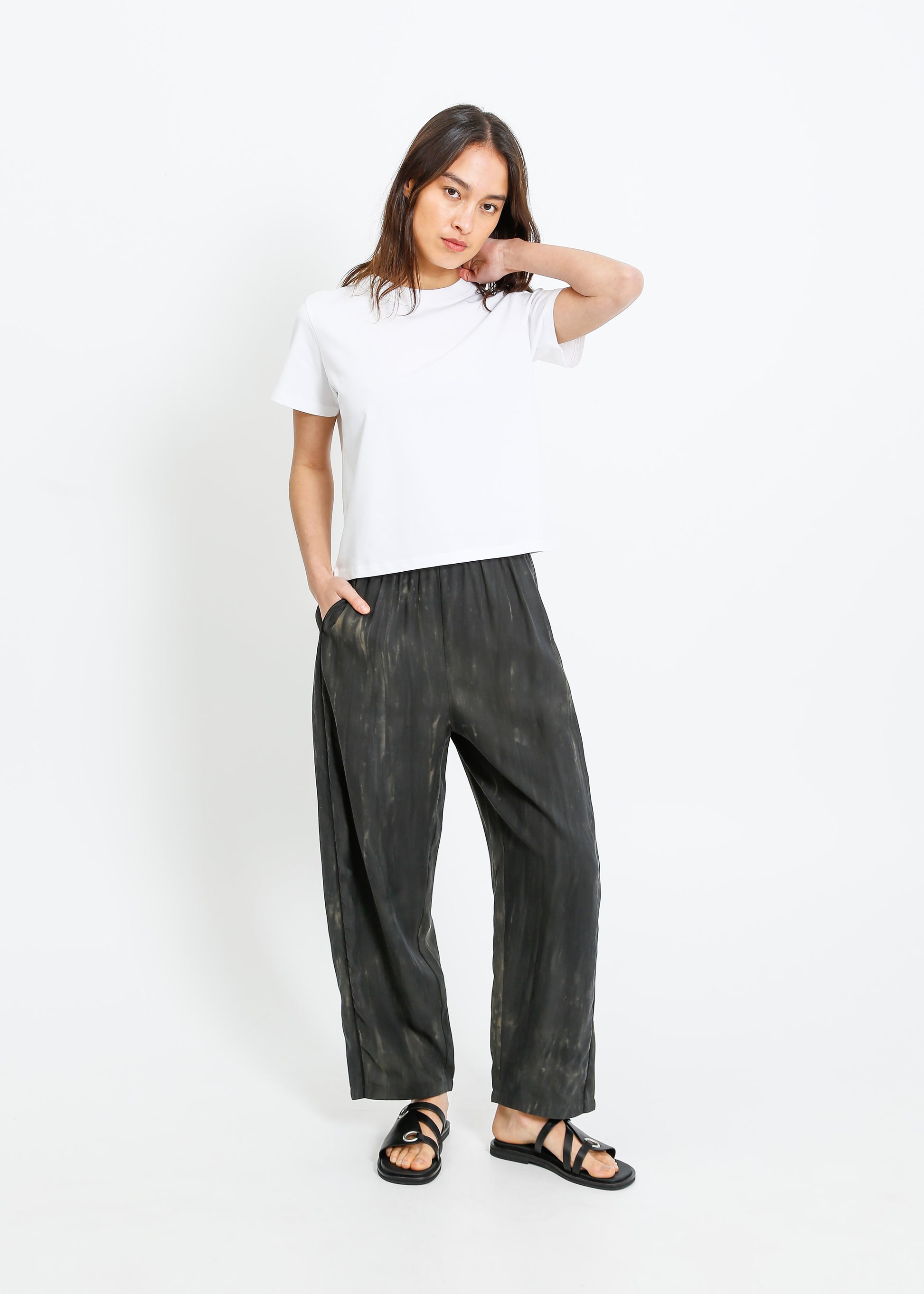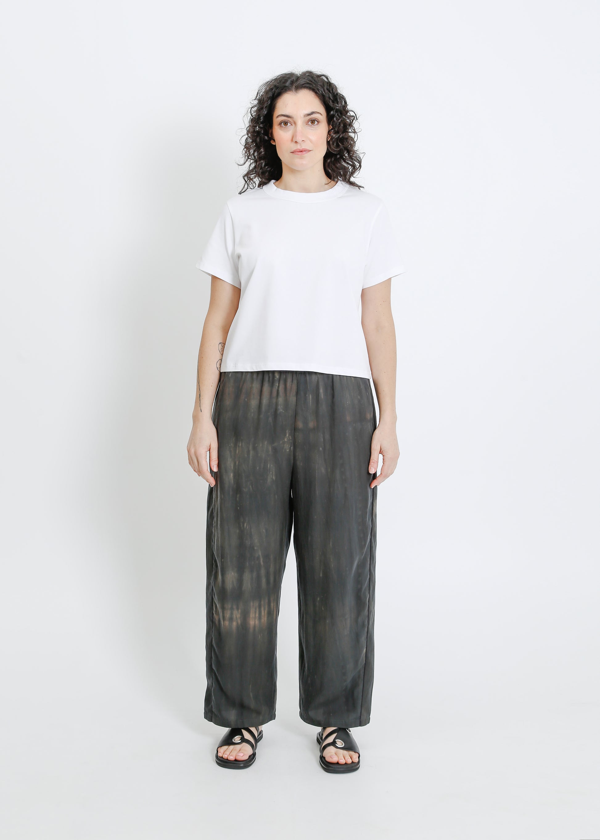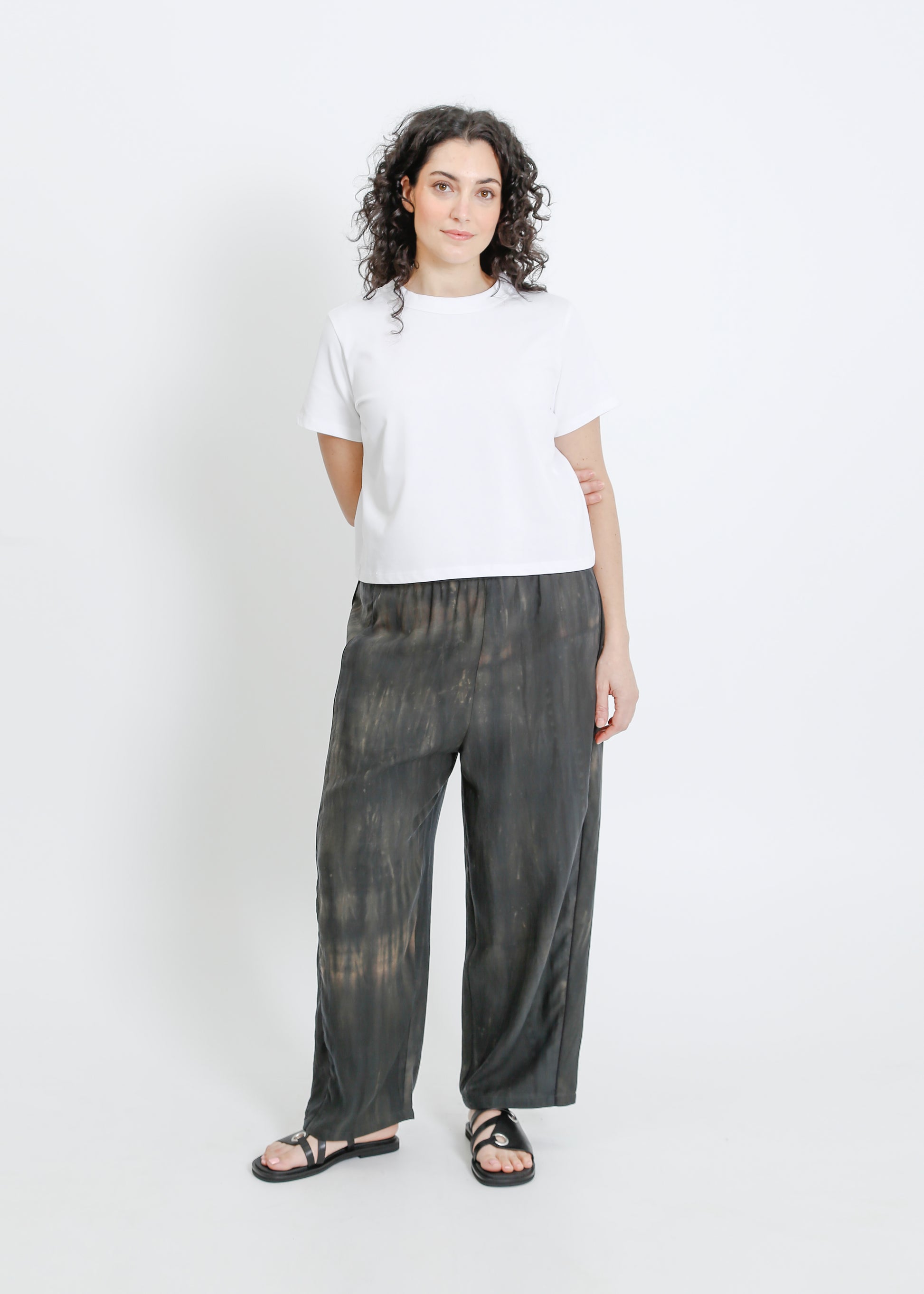 The ALPHA60 Cooper Pant is a modern essential, designed for comfort and style. Featuring a full-length silhouette and a high-rise fit, these pants are crafted from soft Tencel with a subtle drape. Black piping along the design lines adds a refined touch, while the elasticated waistband ensures ease of wear. Perfect for elevating your everyday wardrobe.