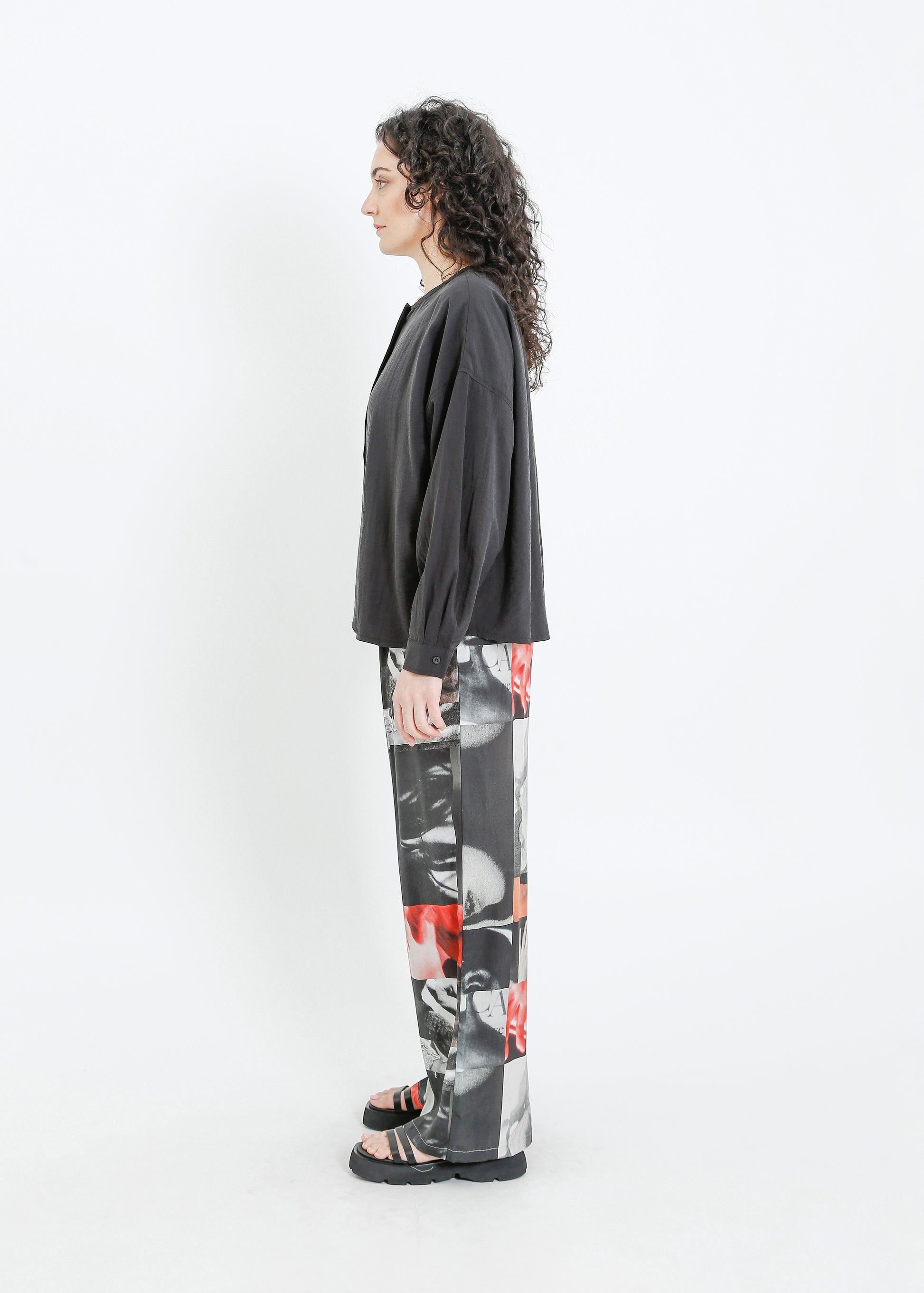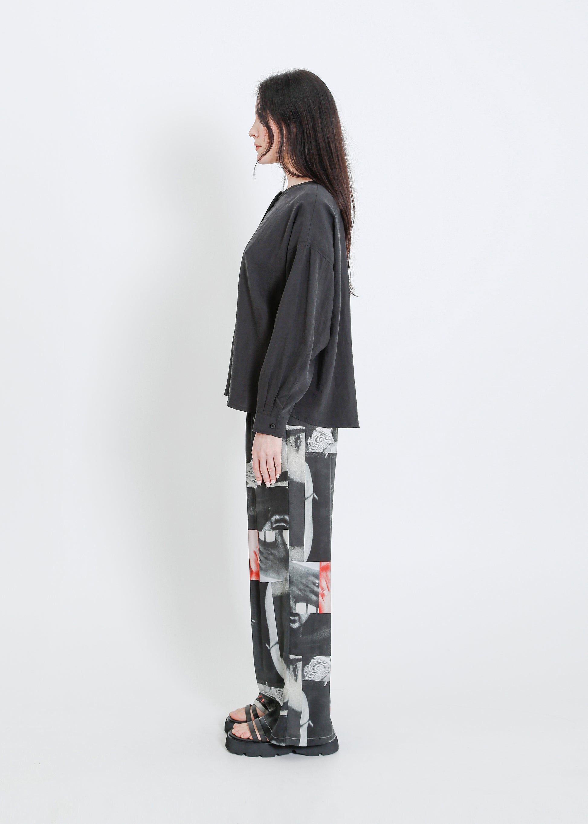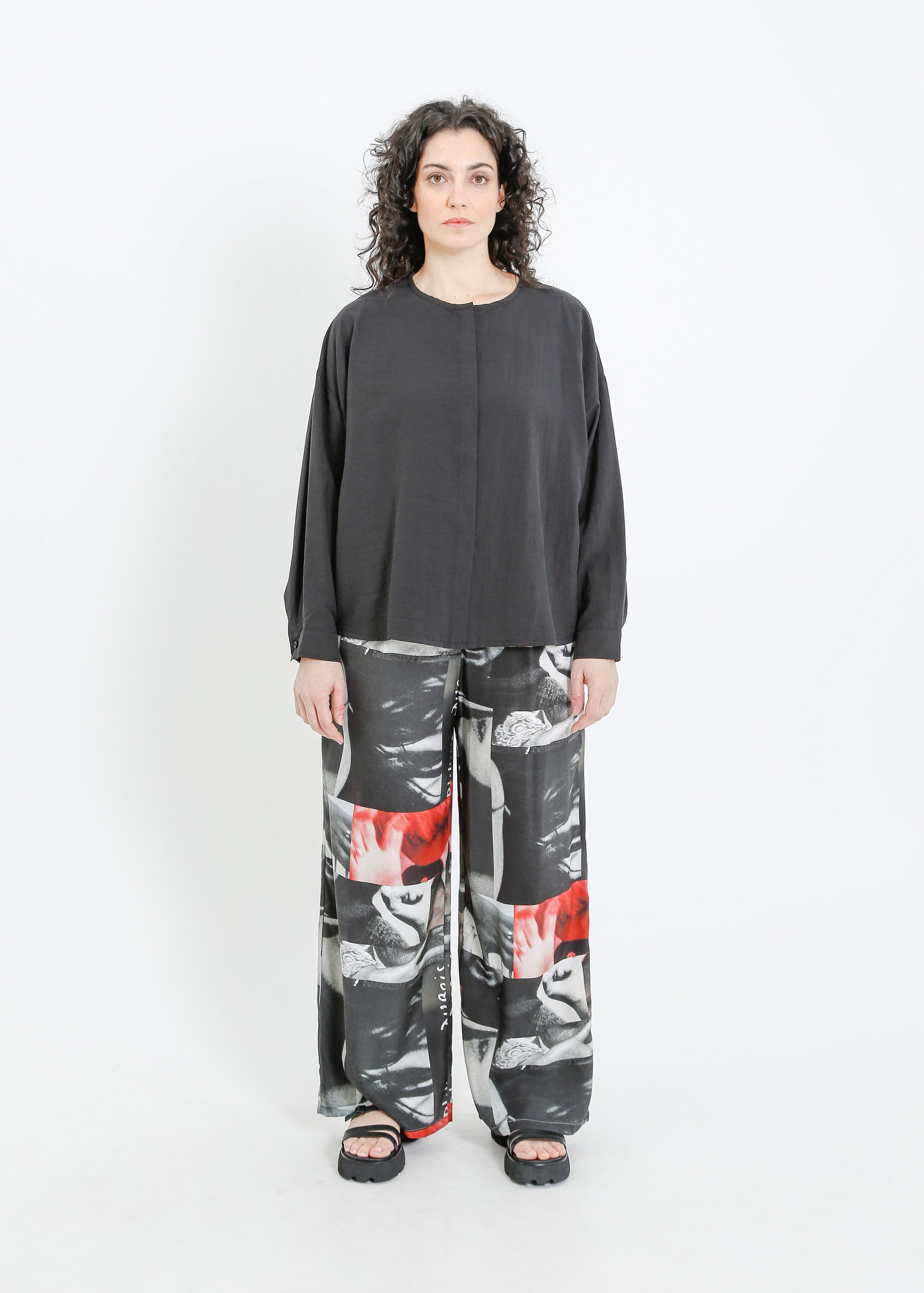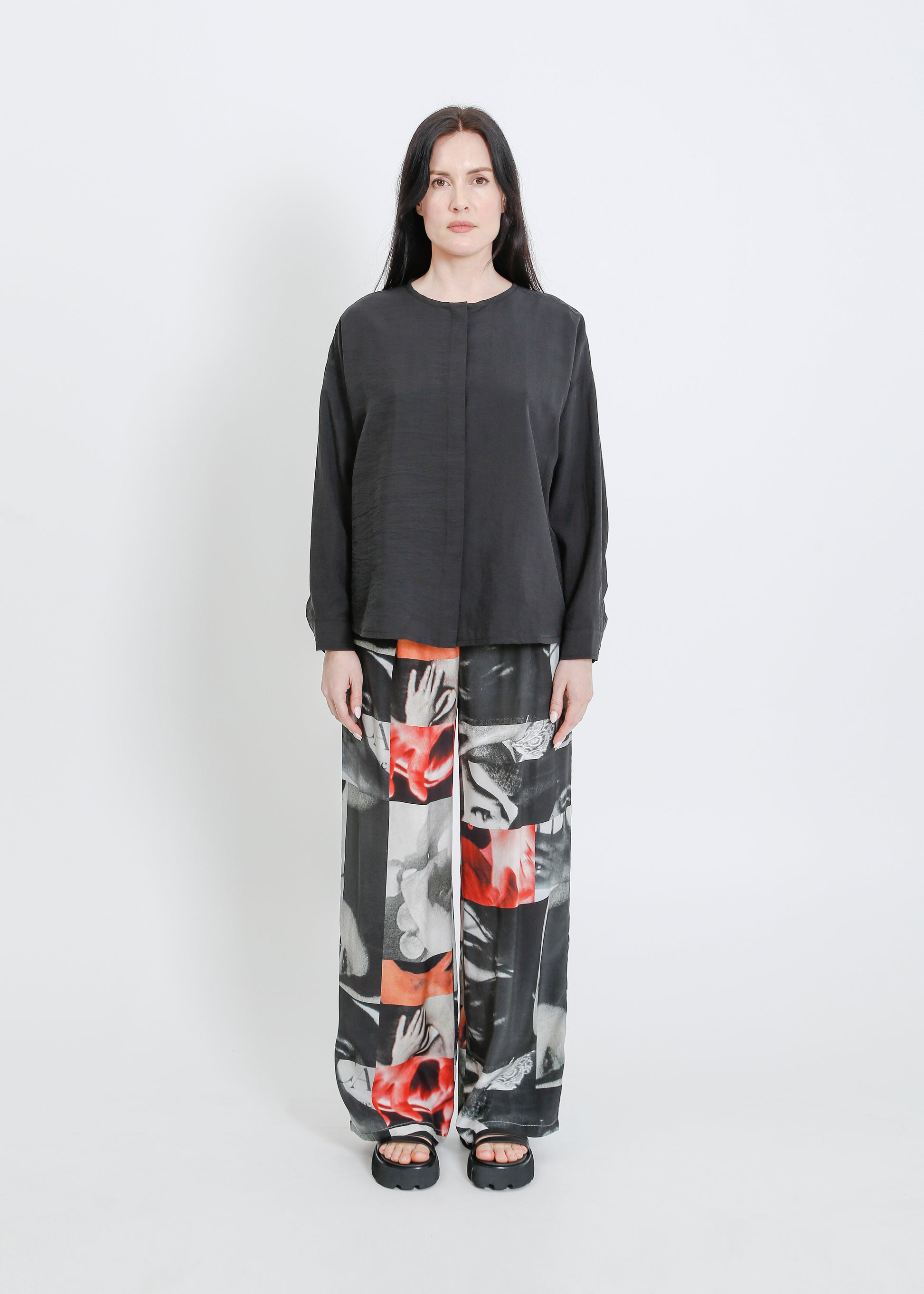 The ALPHA60 Galen Shirt is a modern take on a classic silhouette, crafted from a luxurious silk blend with a washed crinkle effect. This piece features a boxy fit and a standard length, making it a versatile addition to any wardrobe. The unique texture and subtle sheen elevate the look, perfect for both casual and elevated styling.