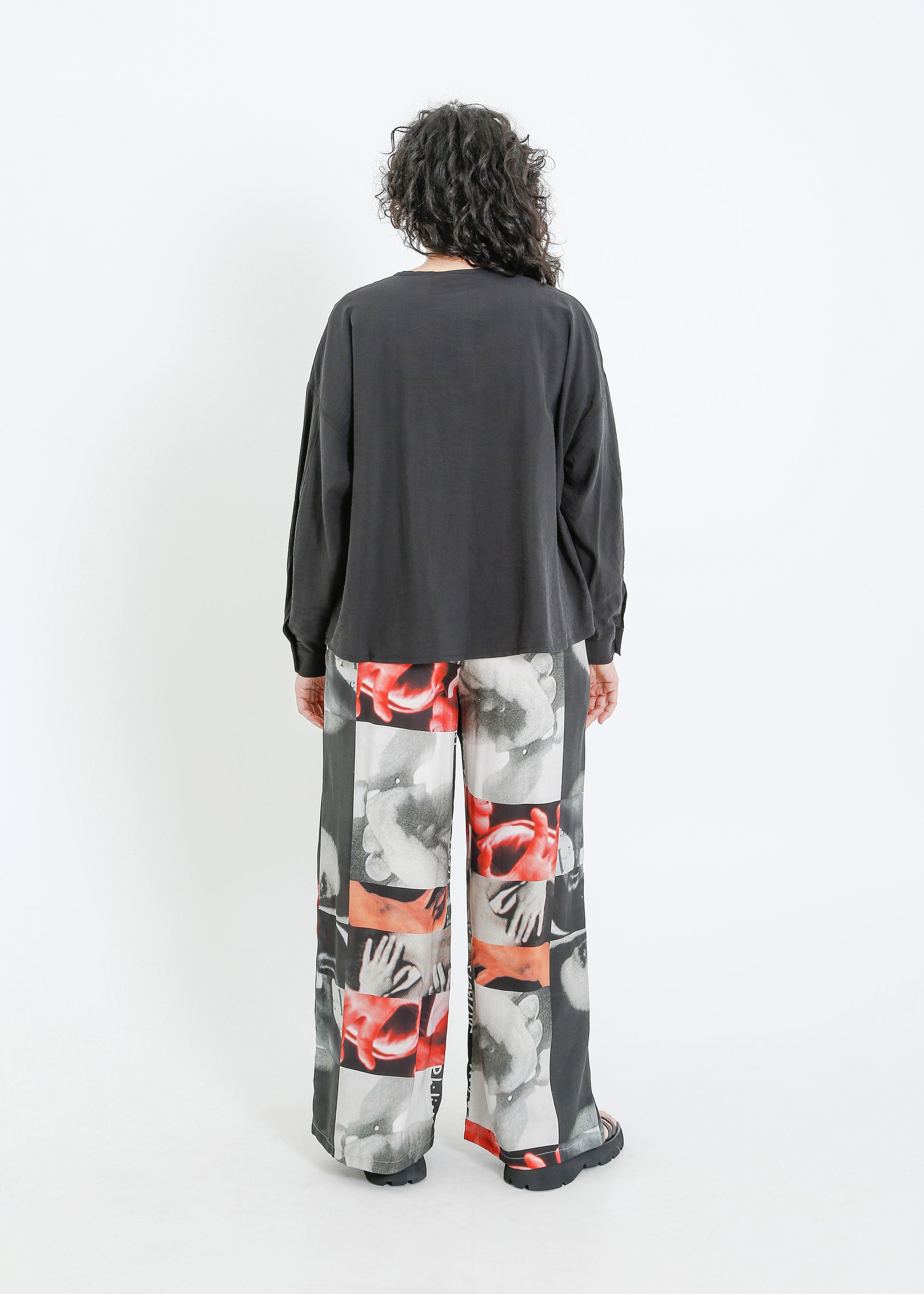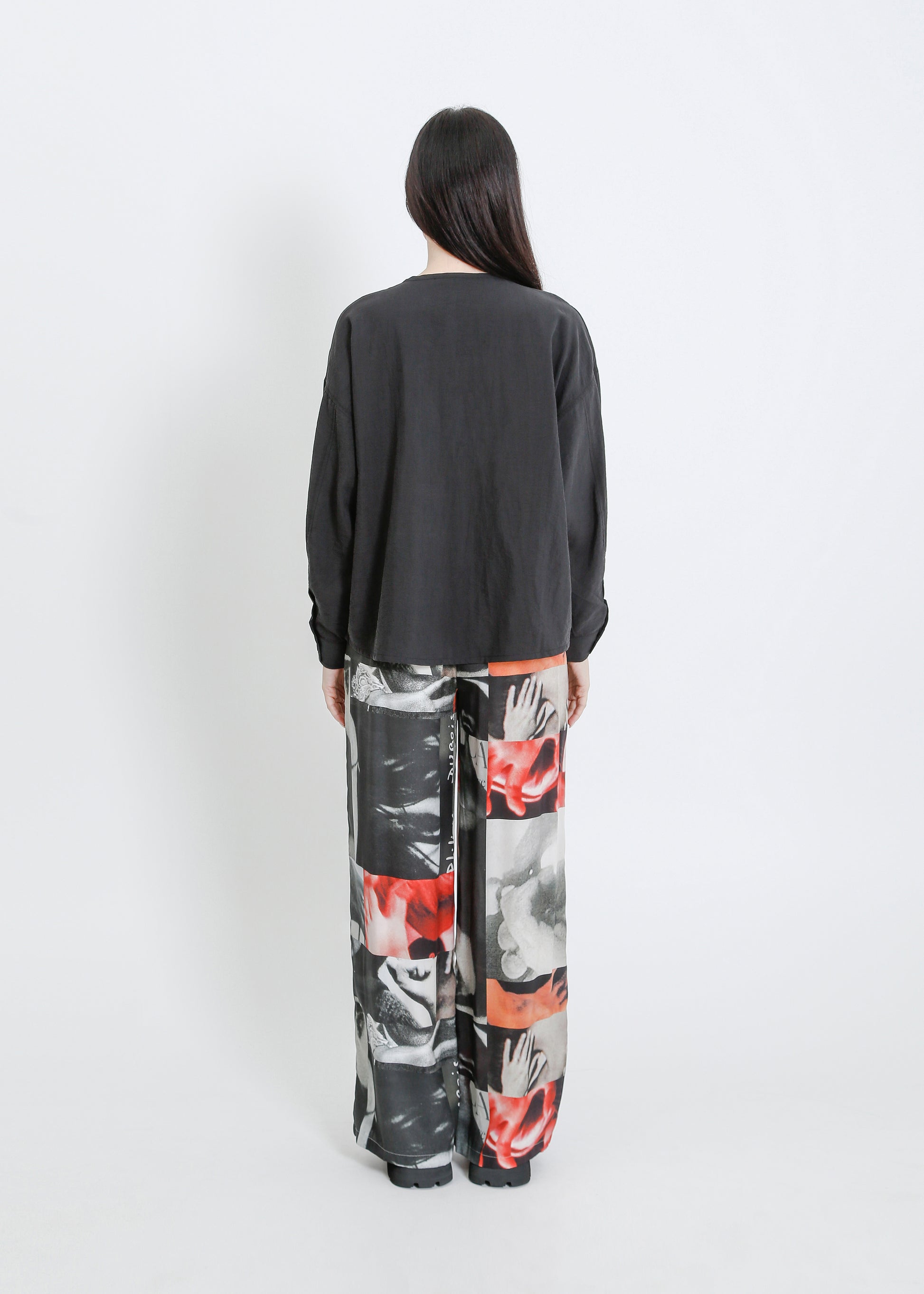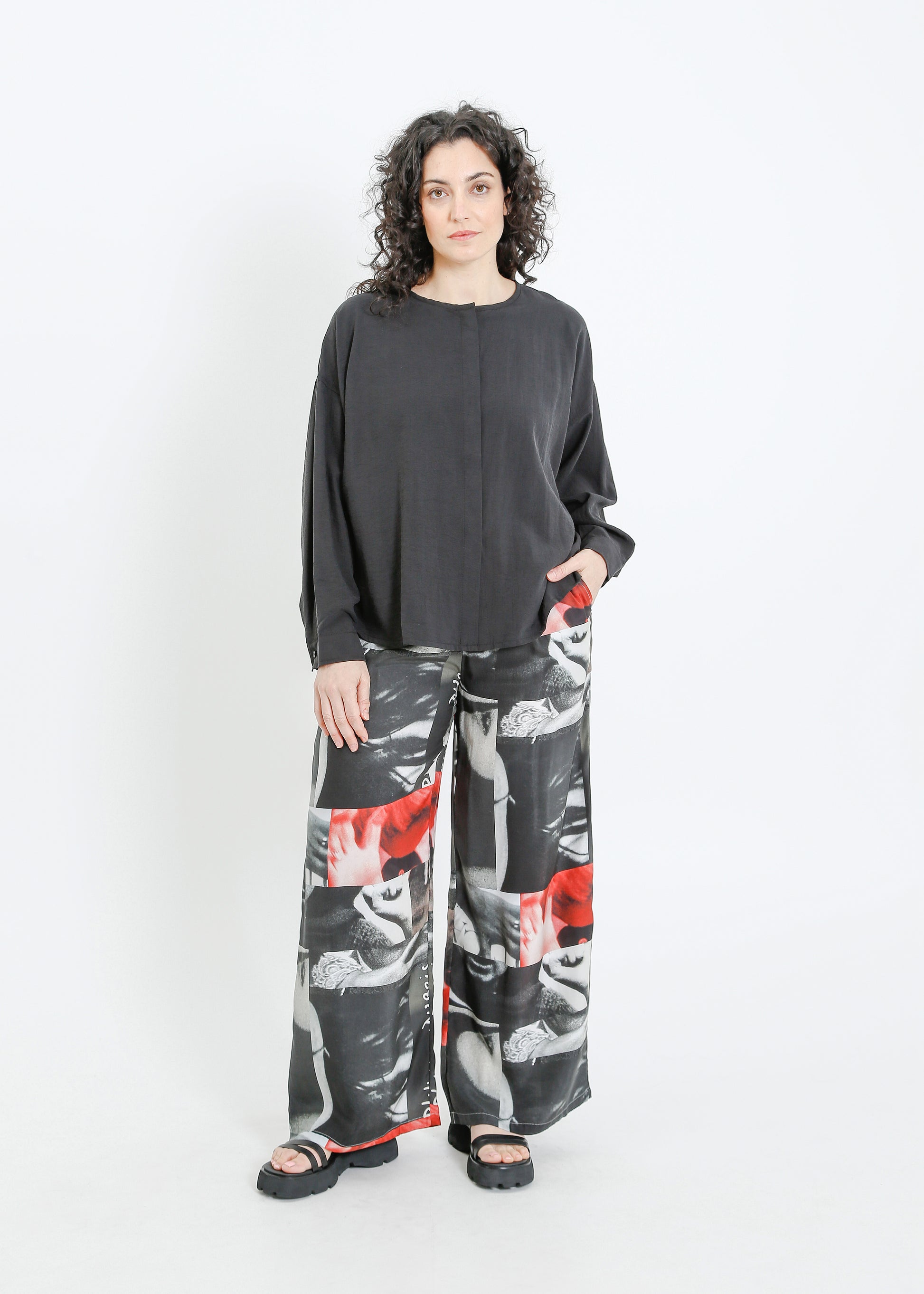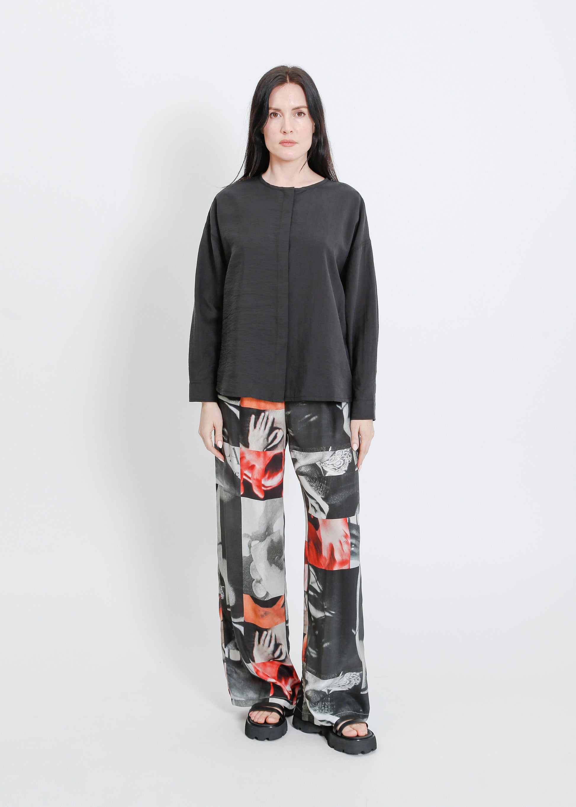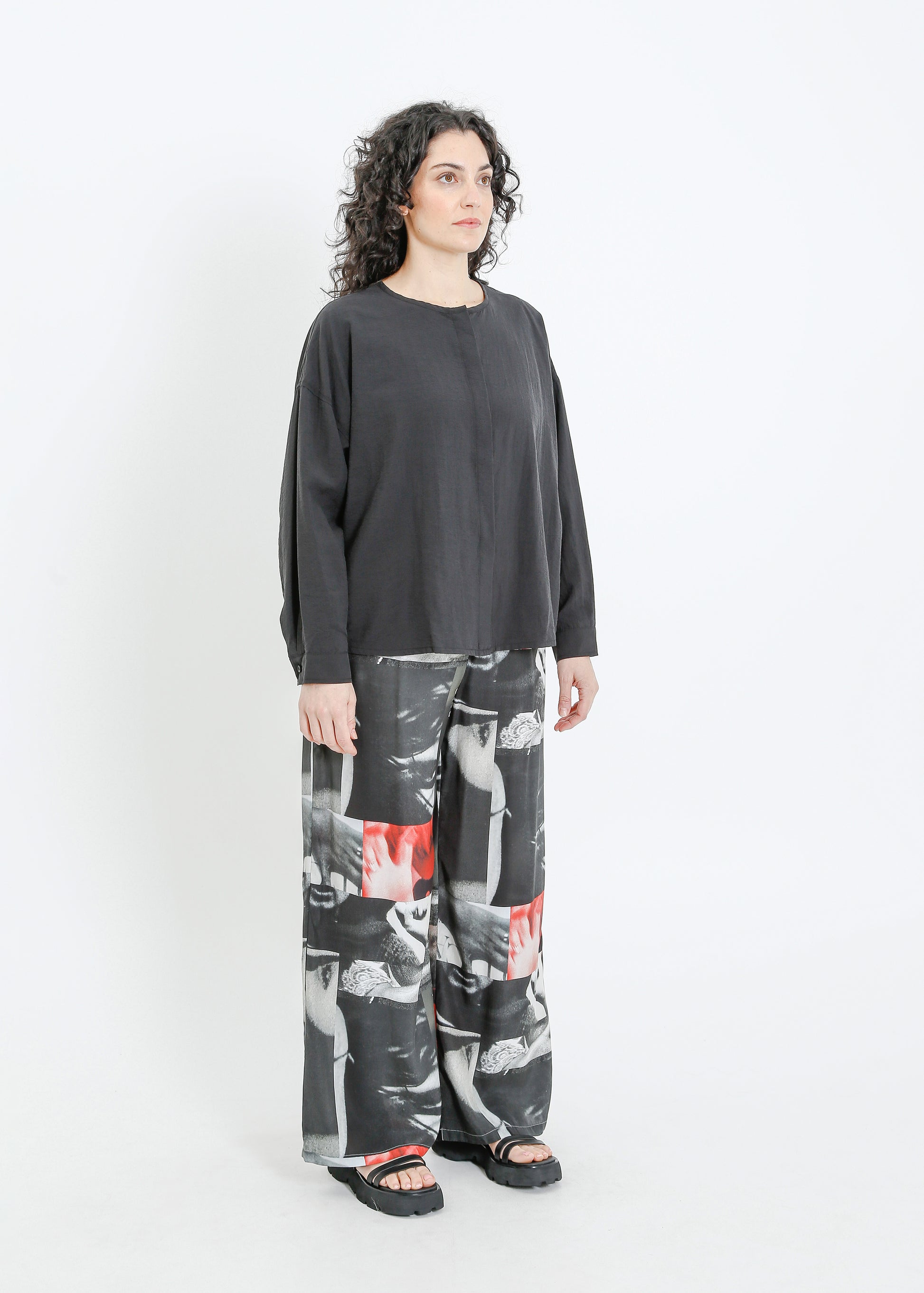 The ALPHA60 Galen Shirt is a modern take on a classic silhouette, crafted from a luxurious silk blend with a washed crinkle effect. This piece features a boxy fit and a standard length, making it a versatile addition to any wardrobe. The unique texture and subtle sheen elevate the look, perfect for both casual and elevated styling.