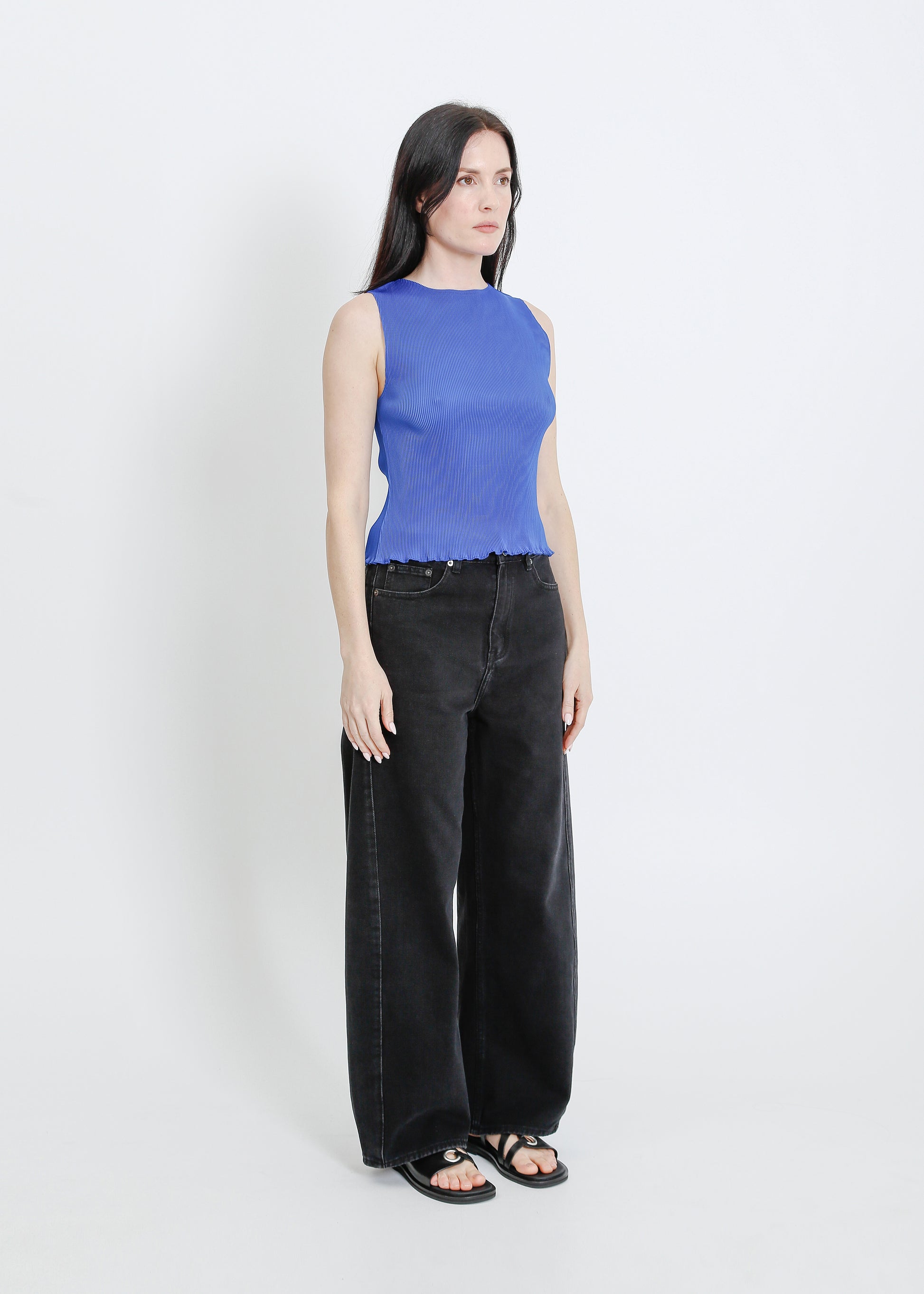 The ALPHA60 Emma Pleat Top is a modern essential, crafted in a vibrant bright blue with a unique crystal pleat texture. This sleeveless crew neck top features a form-fitting silhouette and a...