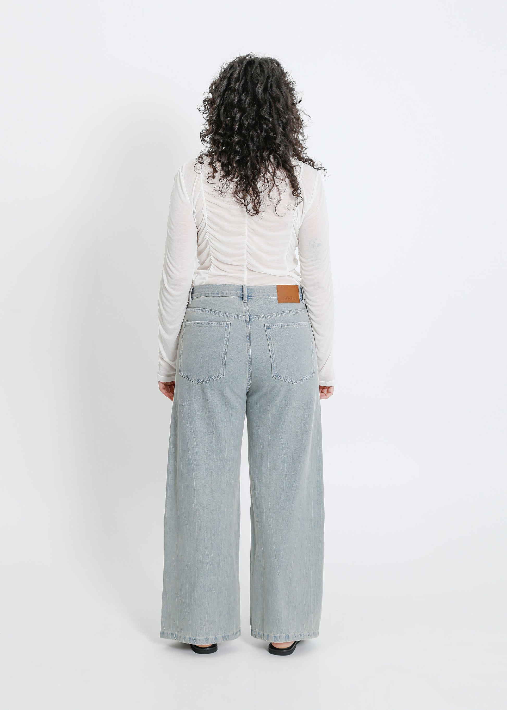 - Waist 39.5cm / Low hip is 53.5cm / Inner leg length is 78cm / Outleg length 104cm / Front rise is 26.8cm / Back rise is 39cm. Garment measures are taken flat on size S. Body width is graded 2.5cm between sizes.