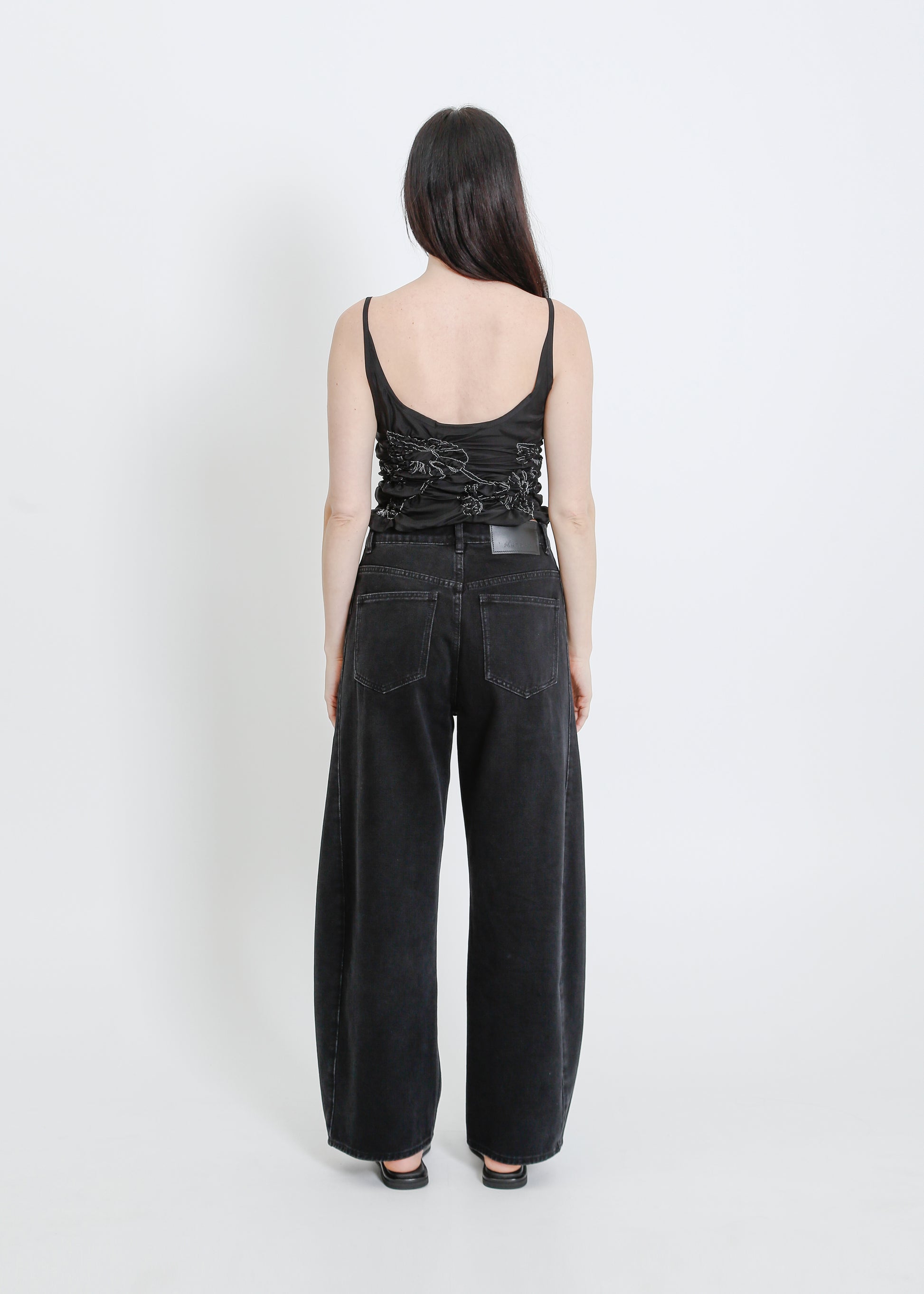 - Please note, as a rigid denim, this style may relax and give out up to half a size when worn.