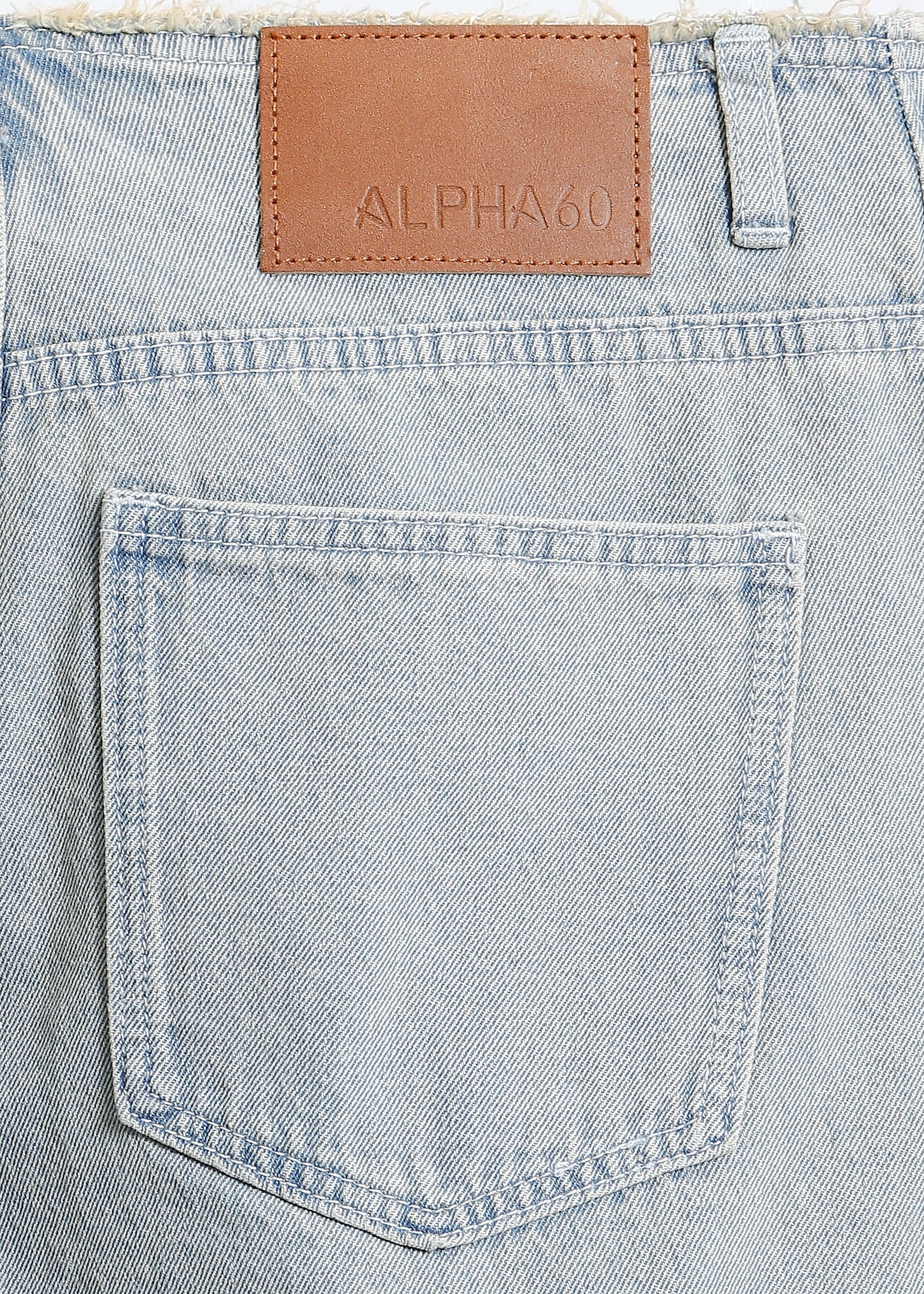 The ALPHA60 Dario Denim Short is a classic 5-pocket denim short, reimagined with a relaxed fit and modern detailing. Crafted from washed rigid denim in an Indigo Beige Wash, this style features a frayed top edge and hems for a lived-in look. Designed to sit low on the waist and fall below the knee, these shorts offer a more relaxed silhouette without a traditional waistband, making them a comfortable and effortless staple for everyday wear.