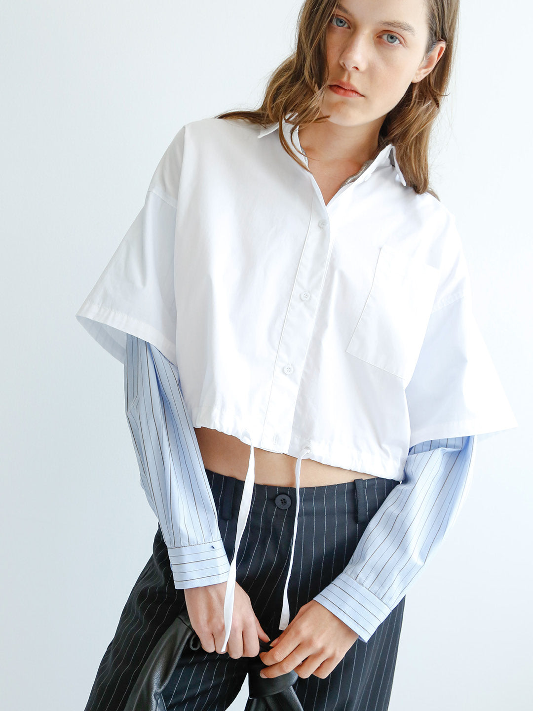 ADLINA SHIRT / WHITE-BLUE-BEIGE