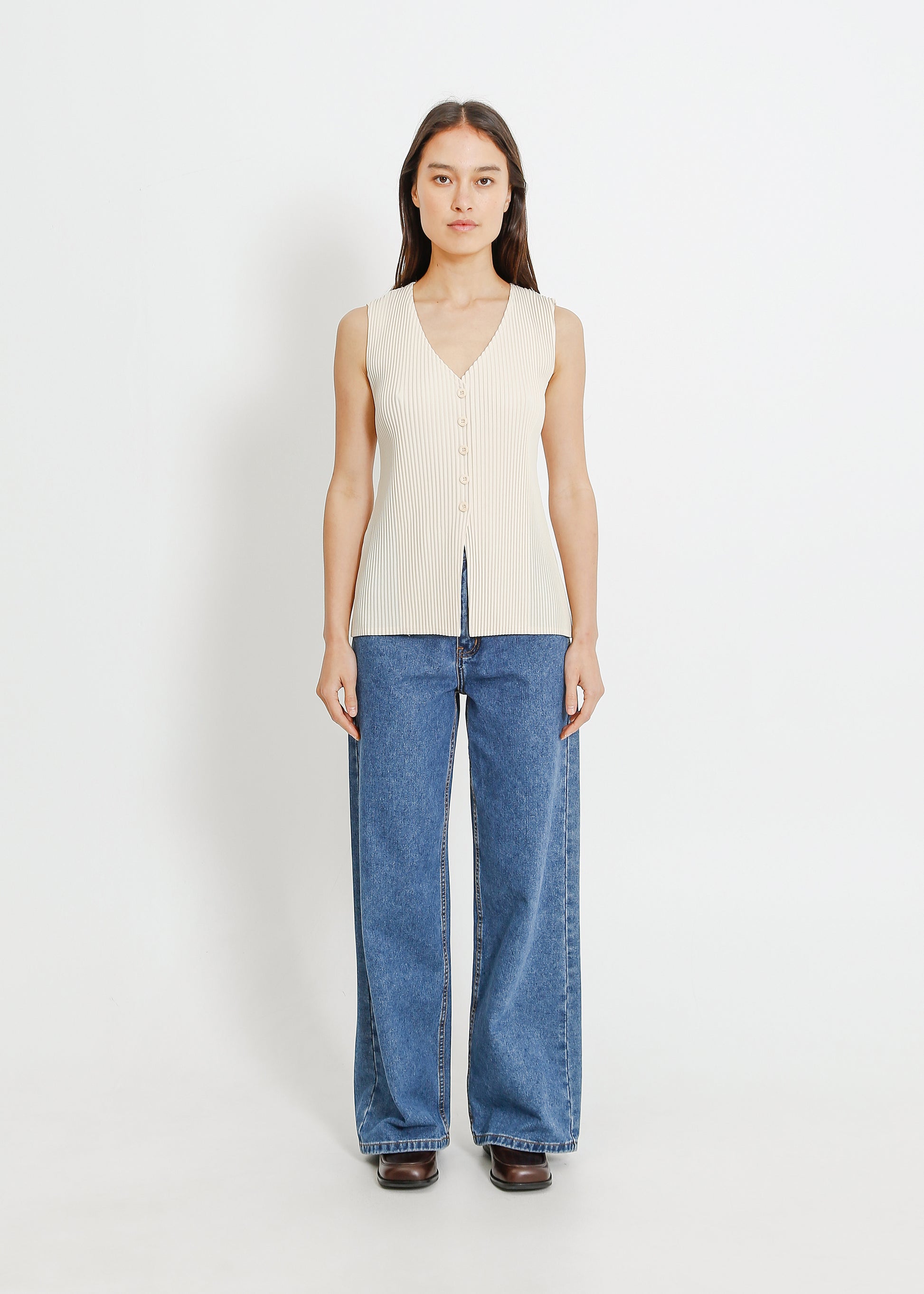 Leonie Pleat Vest / Cream