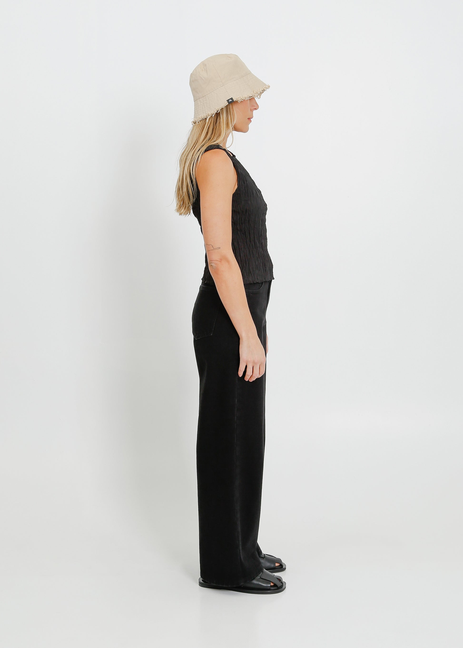 Introducing the ALPHA60 Wyatt Hat, your essential companion for summer adventures. The Wyatt Hat stands out with its unique frayed seam details, adding a touch of cool charm to its classic silhouette. For versatility, it can be effortlessly reversed for a more refined and polished appearance, ensuring you can adapt your look to suit any occasion. The narrow brim has topstitching and has been finished with a raw edge.