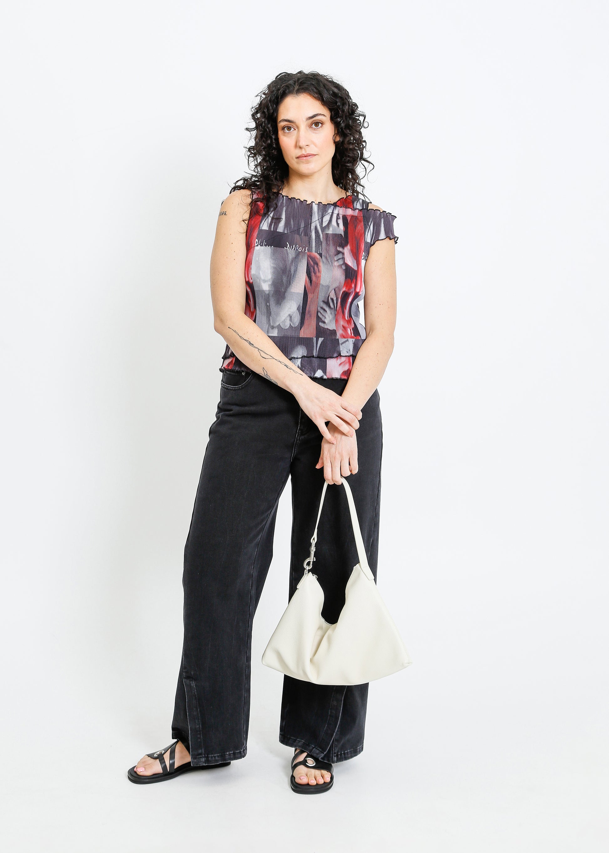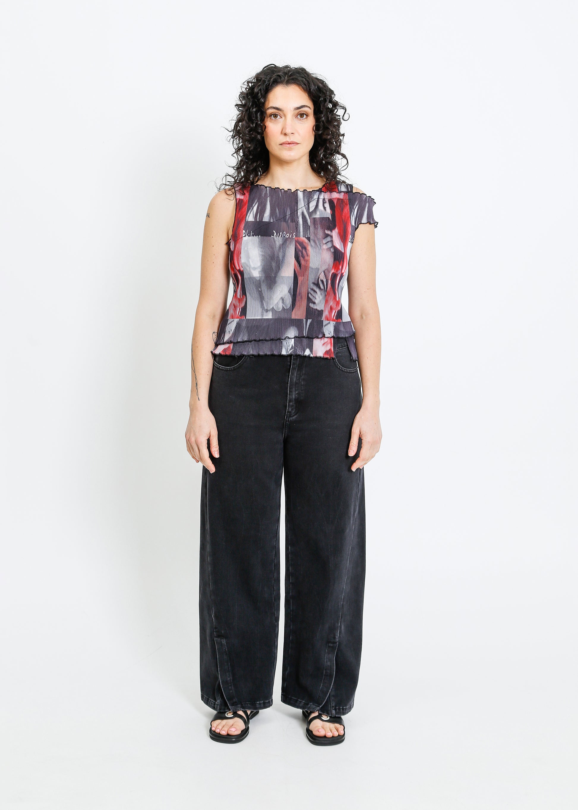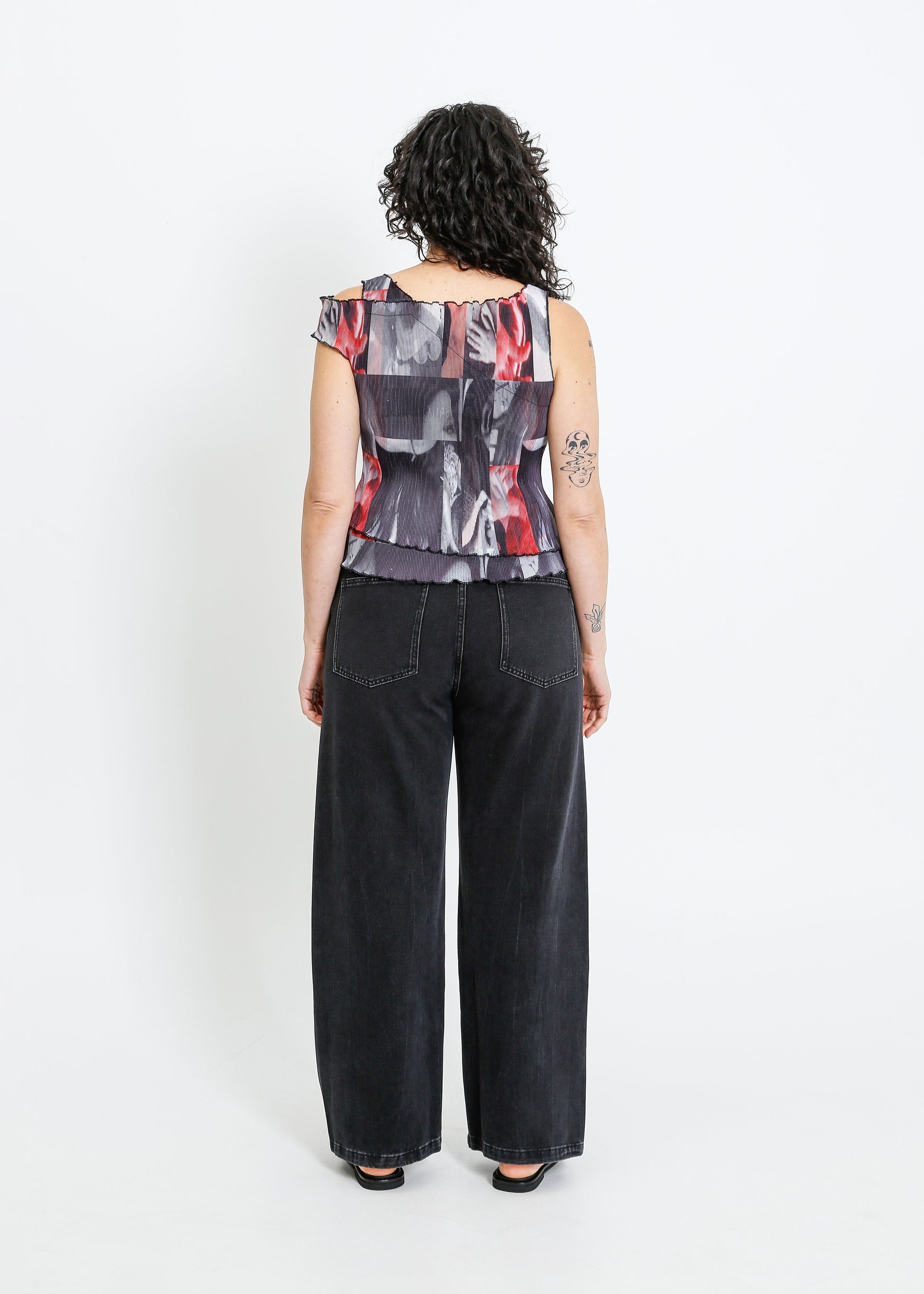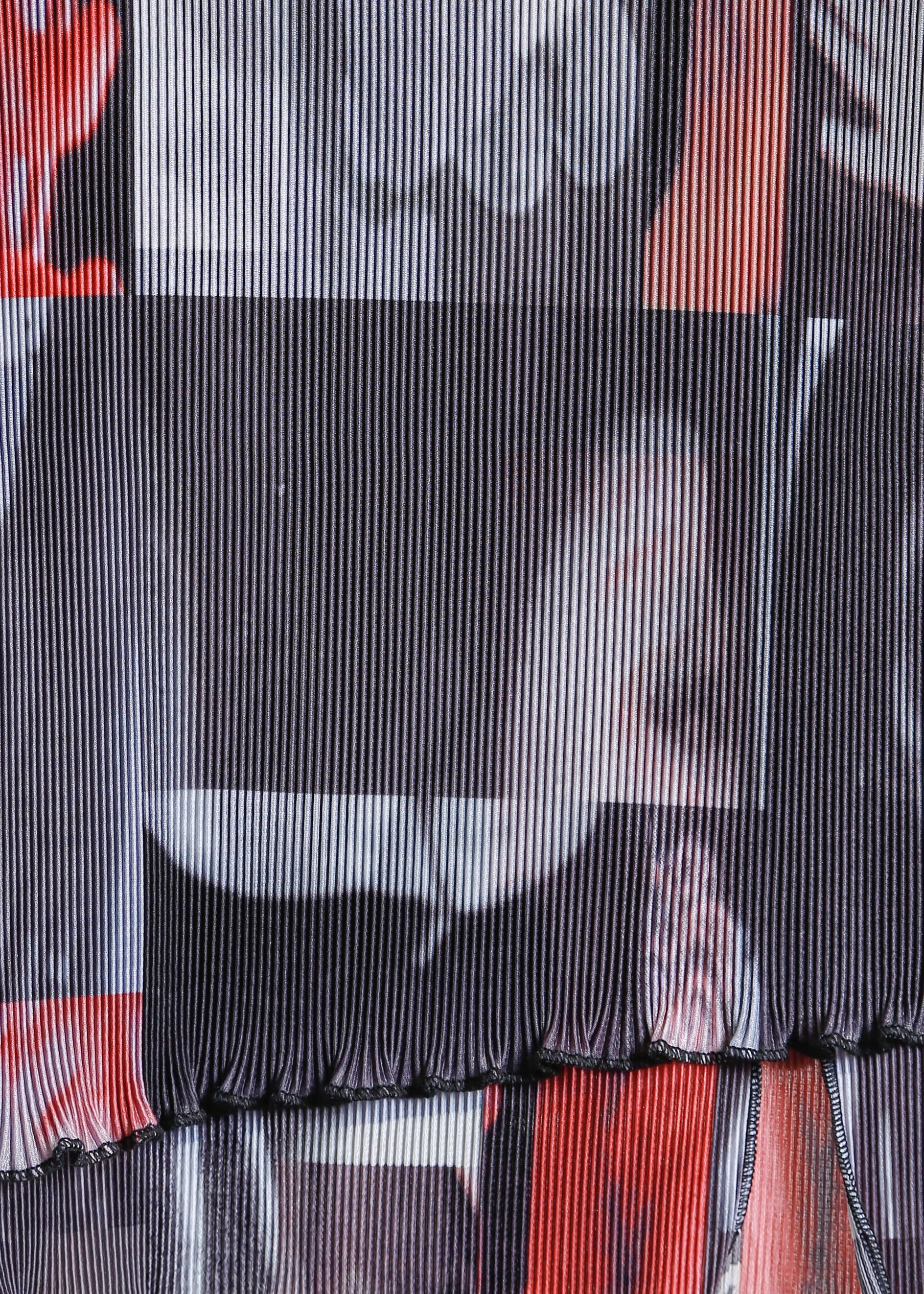 The ALPHA60 Angel Pleat Top is a statement piece crafted from permanently pleated, printed fabric. Featuring two asymmetric layers sewn together along the neckline, the outer layer sits off ...