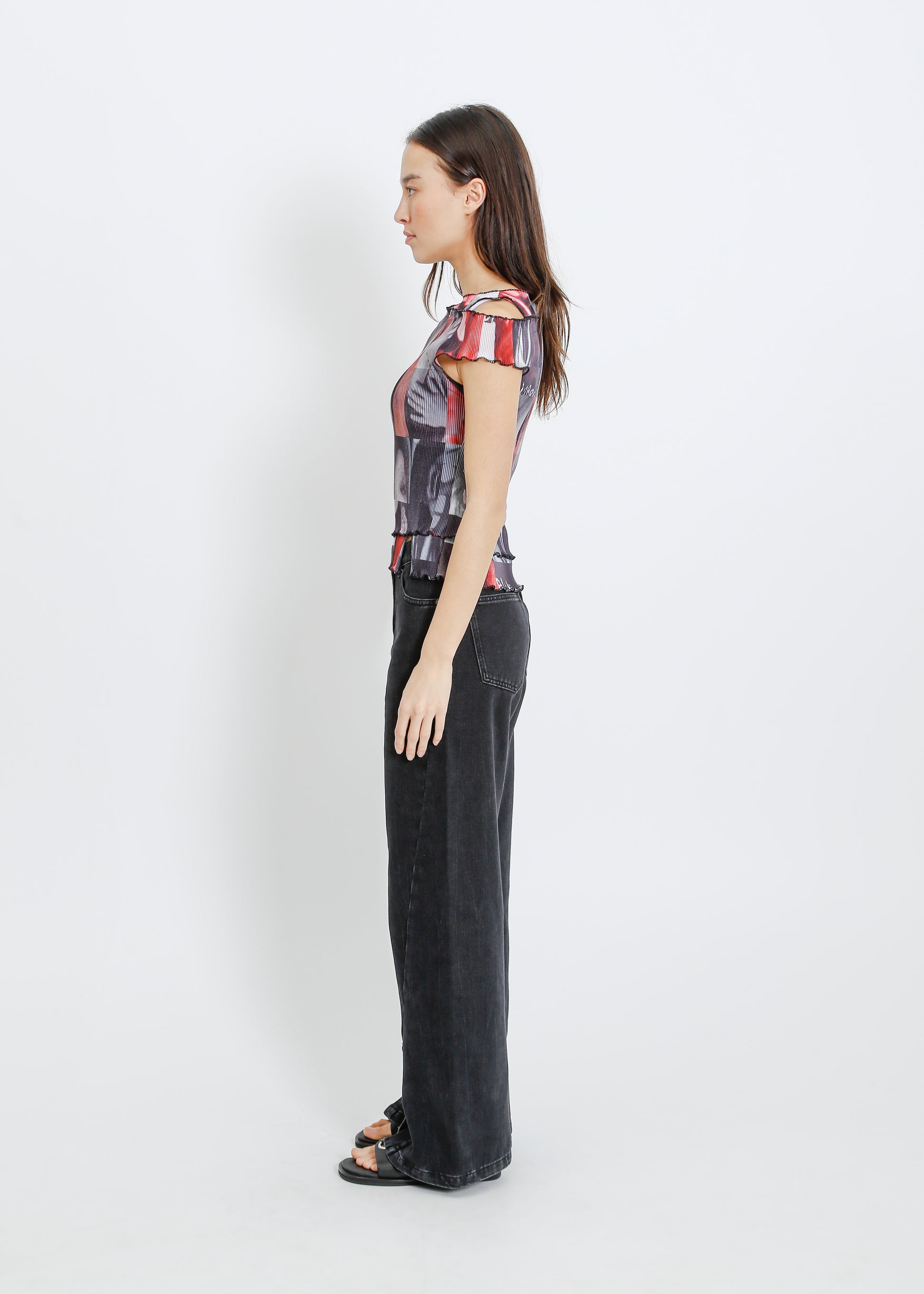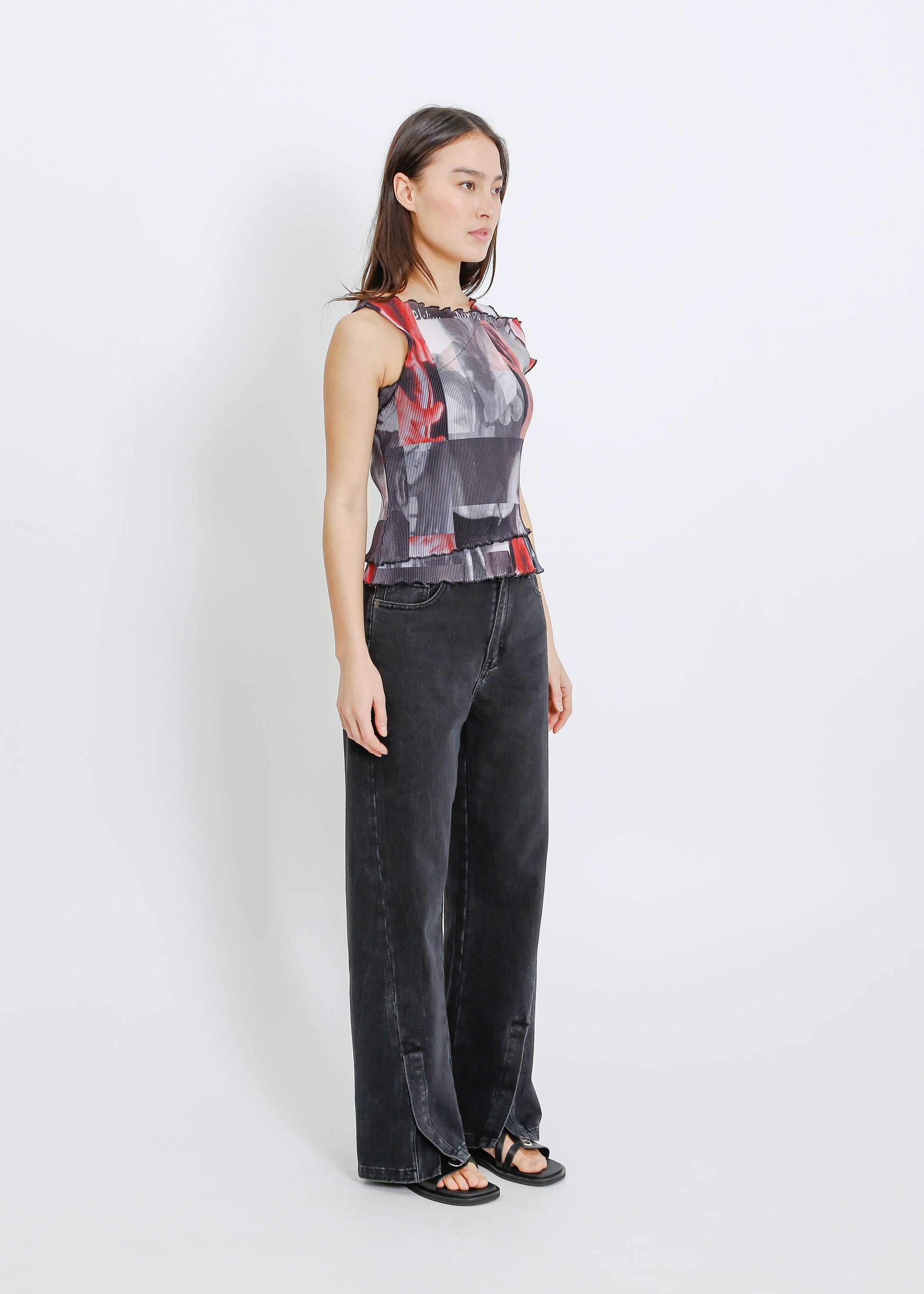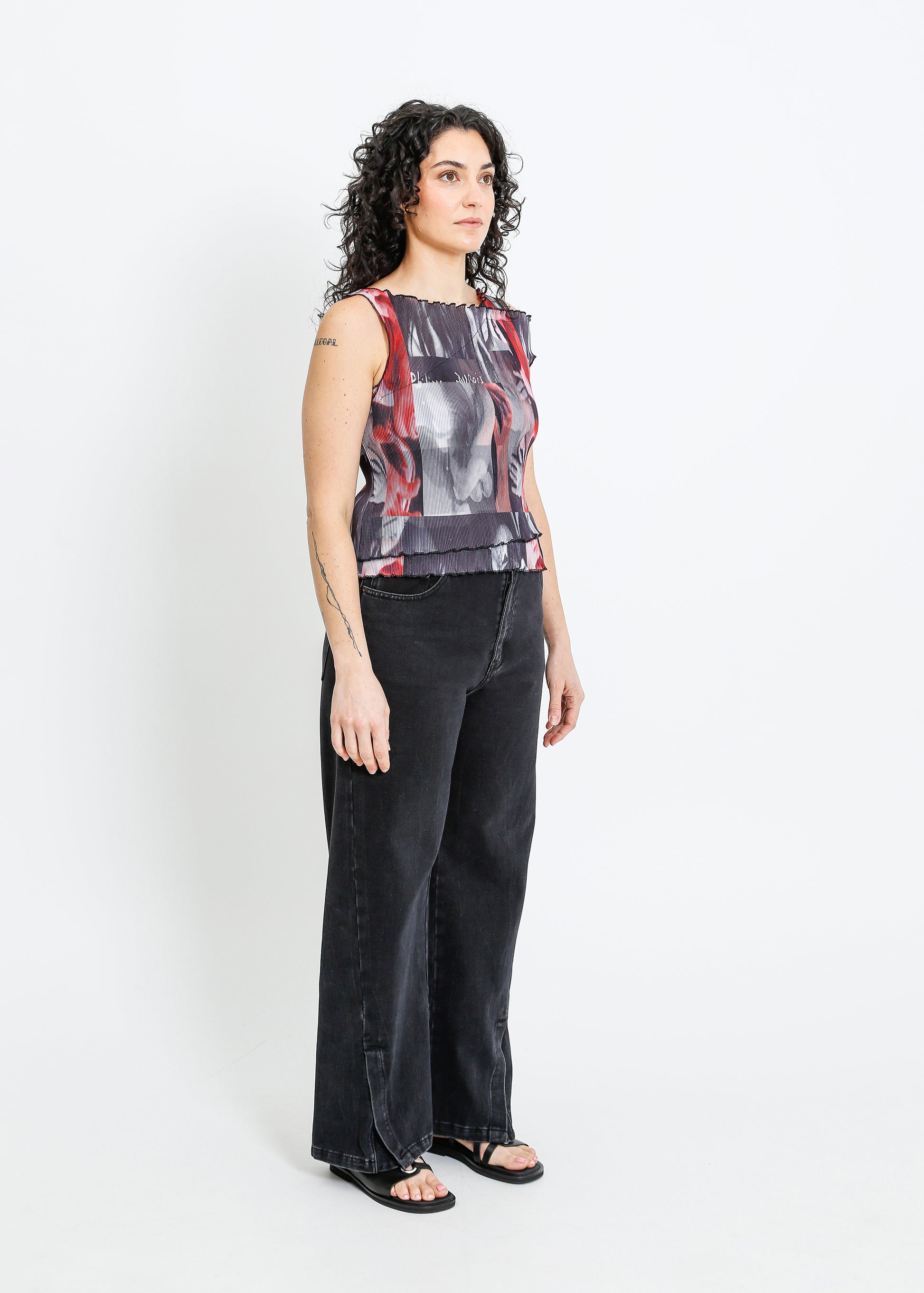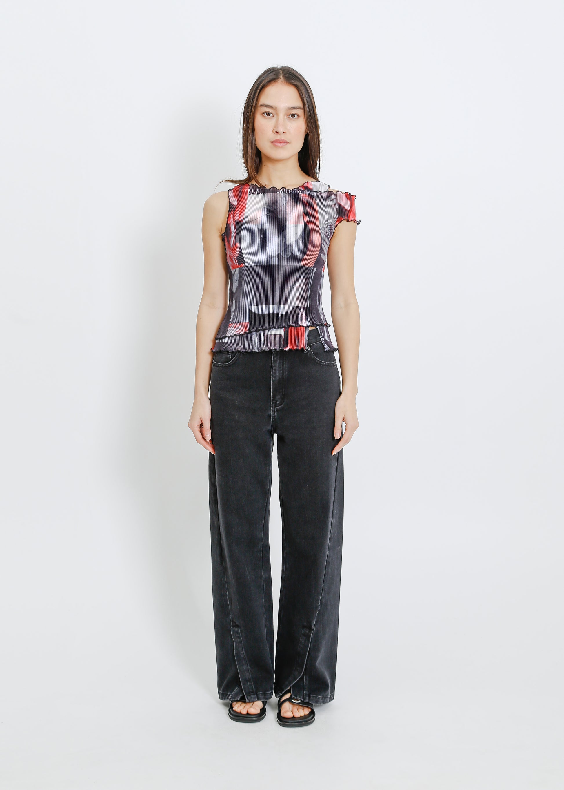 The ALPHA60 Angel Pleat Top is a statement piece crafted from permanently pleated, printed fabric. Featuring two asymmetric layers sewn together along the neckline, the outer layer sits off ...