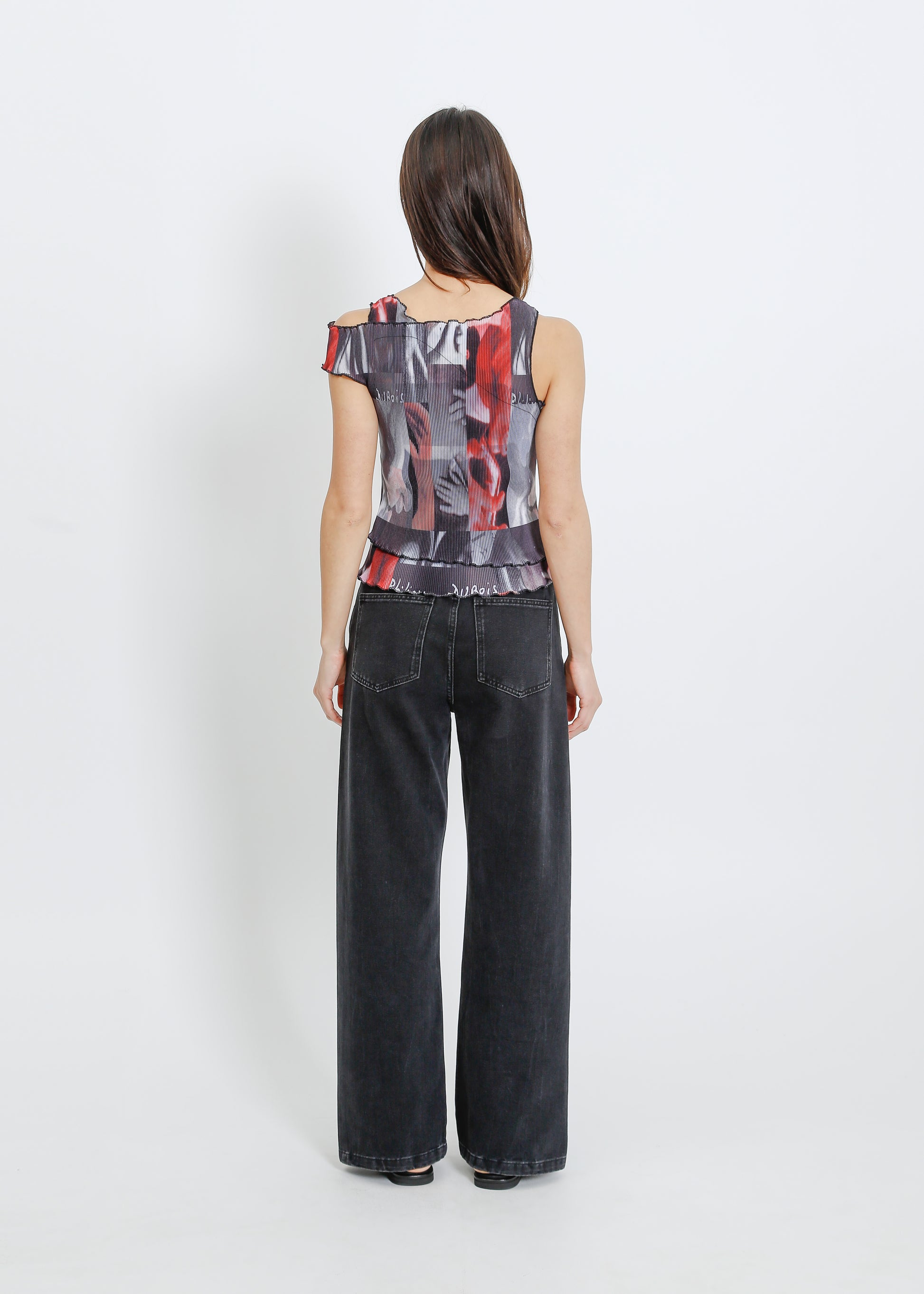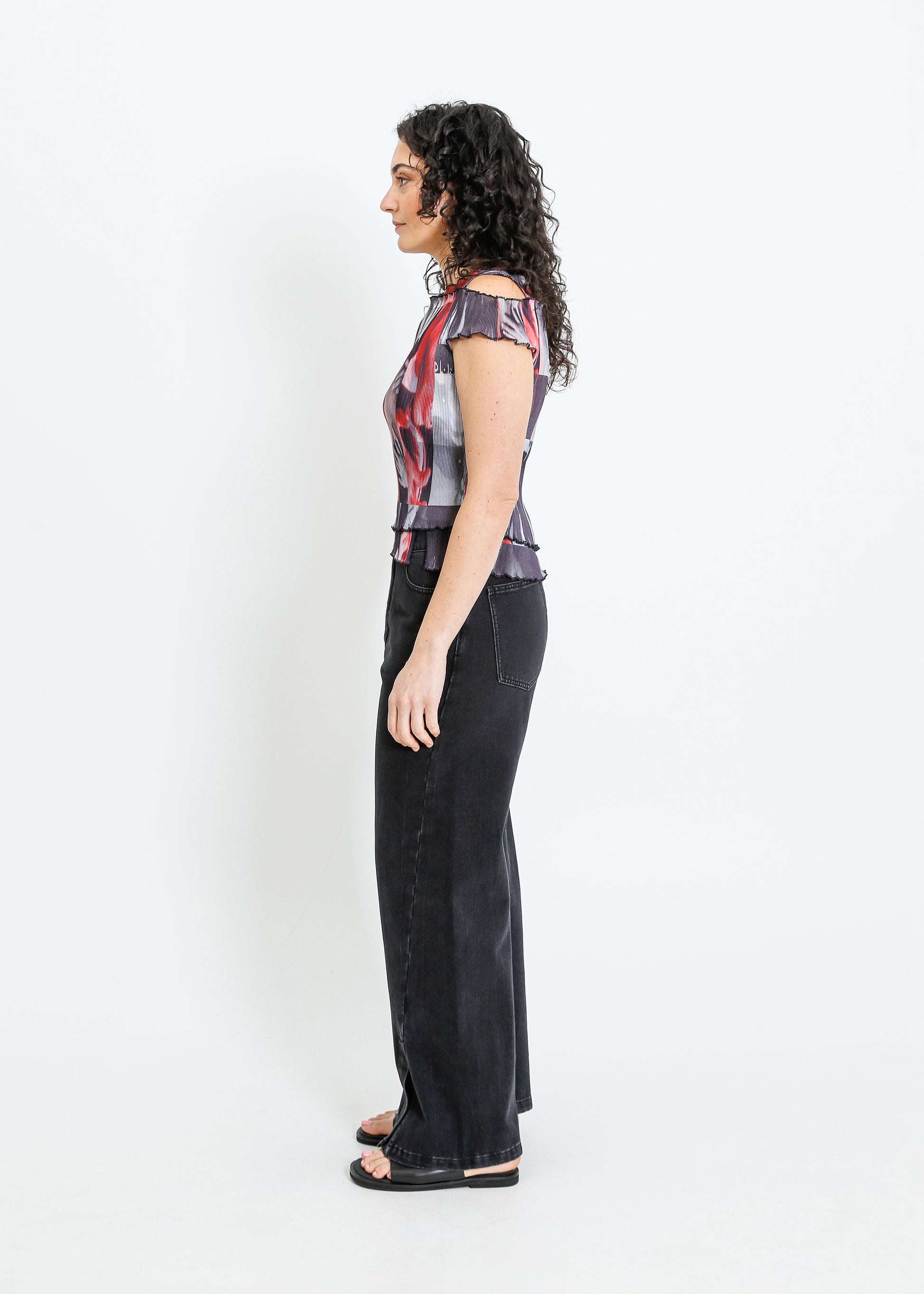 The ALPHA60 Angel Pleat Top is a statement piece crafted from permanently pleated, printed fabric. Featuring two asymmetric layers sewn together along the neckline, the outer layer sits off the shoulder while the inner layer mirrors this with a one-shoulder design. The cropped length and form-fitting silhouette make it a standout for any occasion.