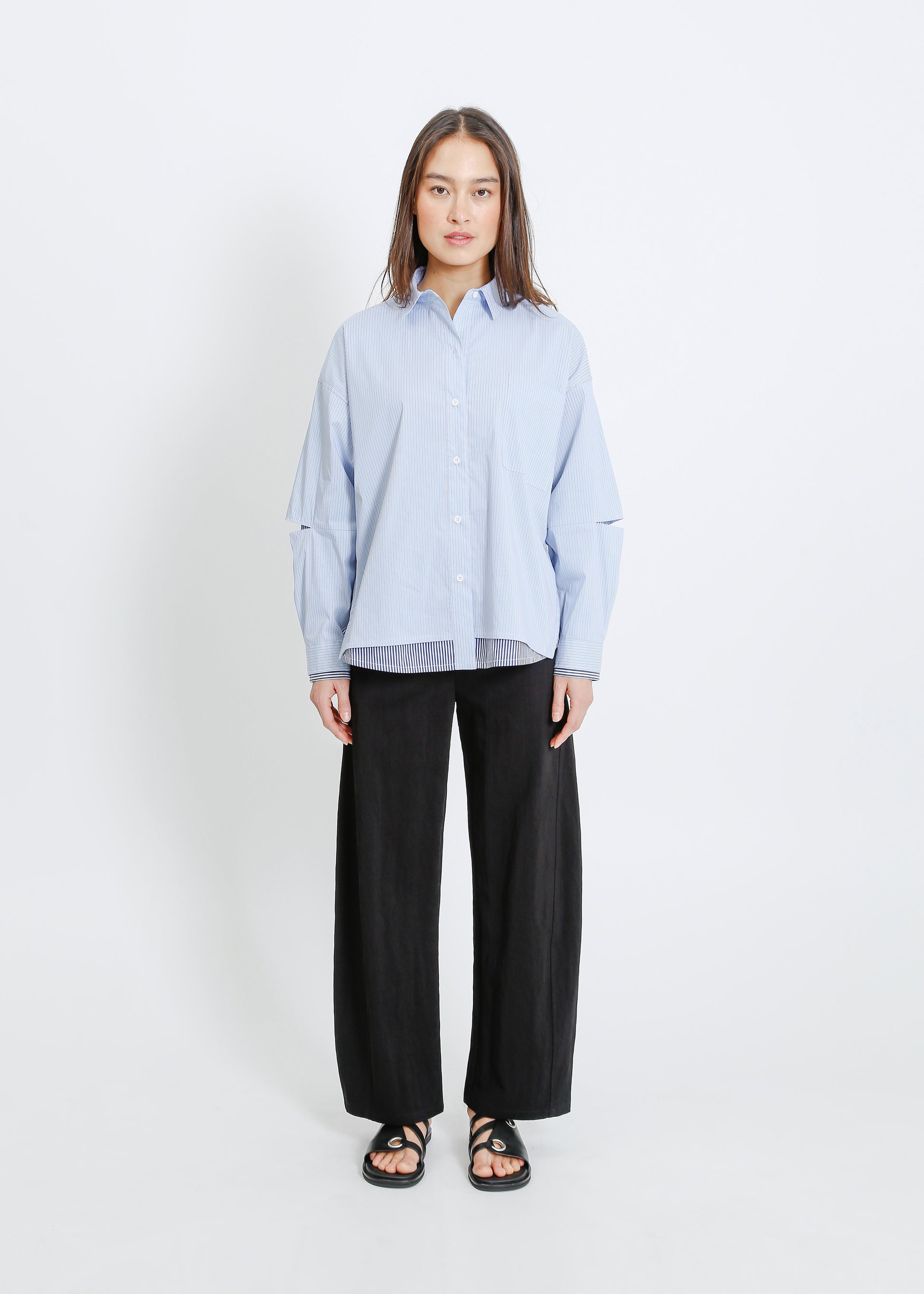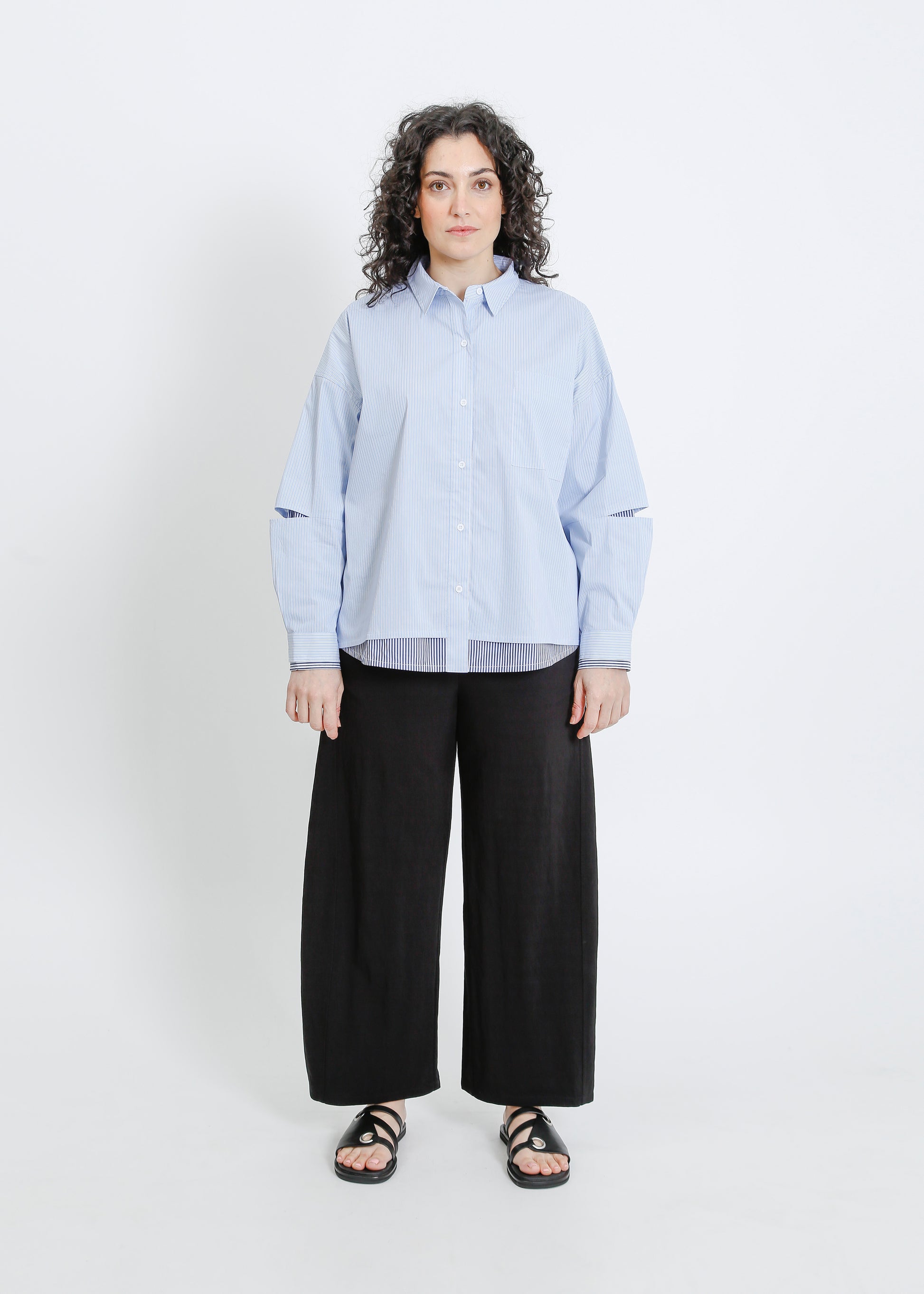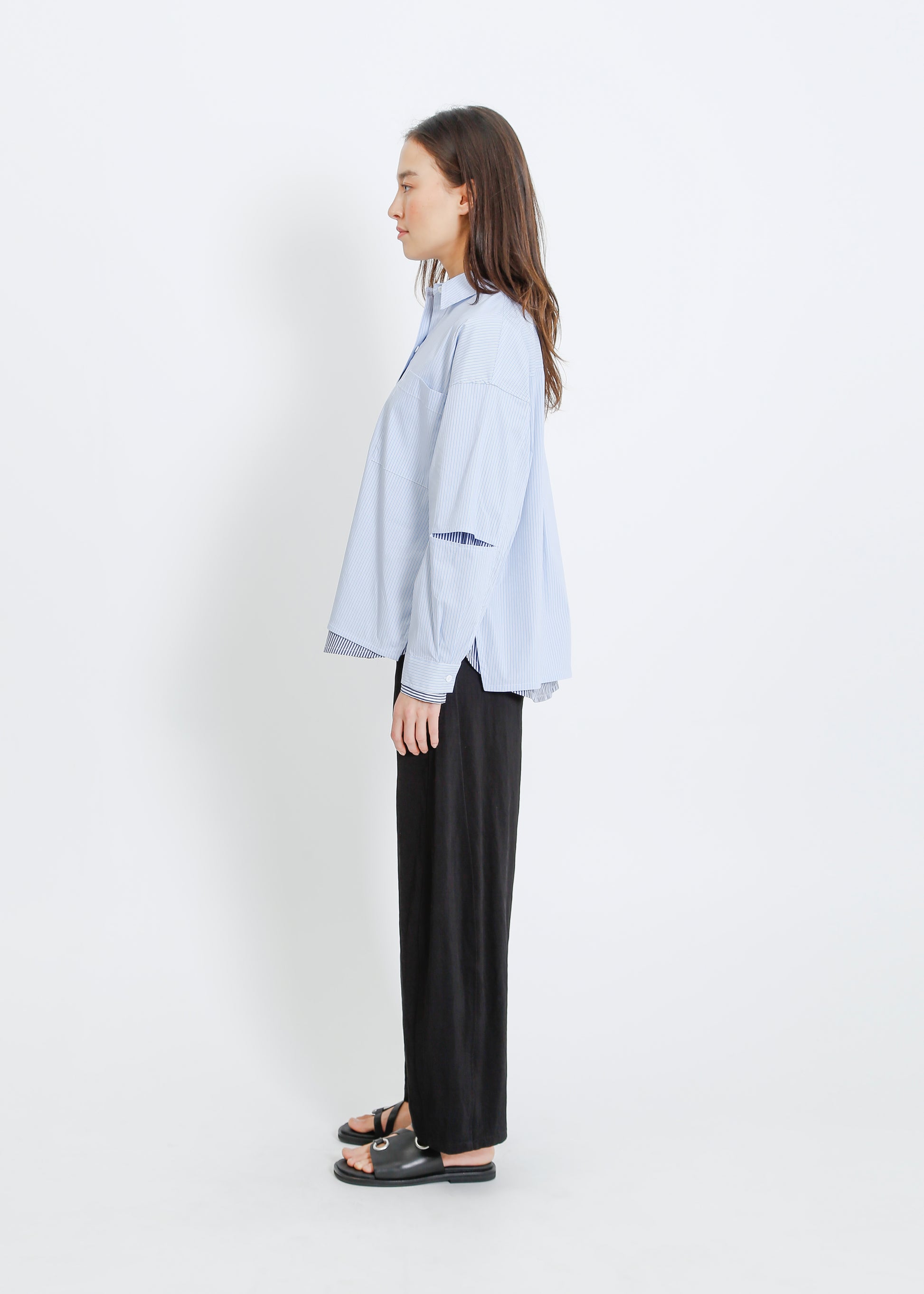 The ALPHA60 Jerry Shirt is a double shirt style, oversized shirt with classic shirt style detailing. Crafted for a modern, relaxed silhouette, this piece offers a fresh take on timeless shirting, perfect for layering or wearing solo. The blue-white colour way adds a crisp, contemporary edge to your wardrobe.