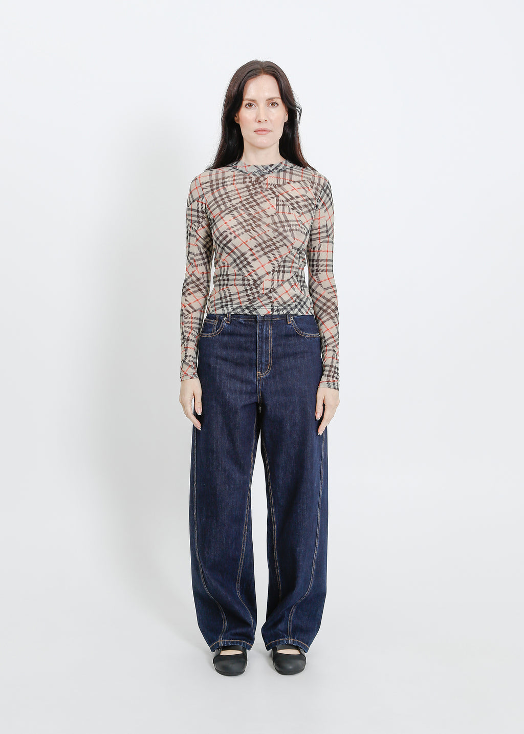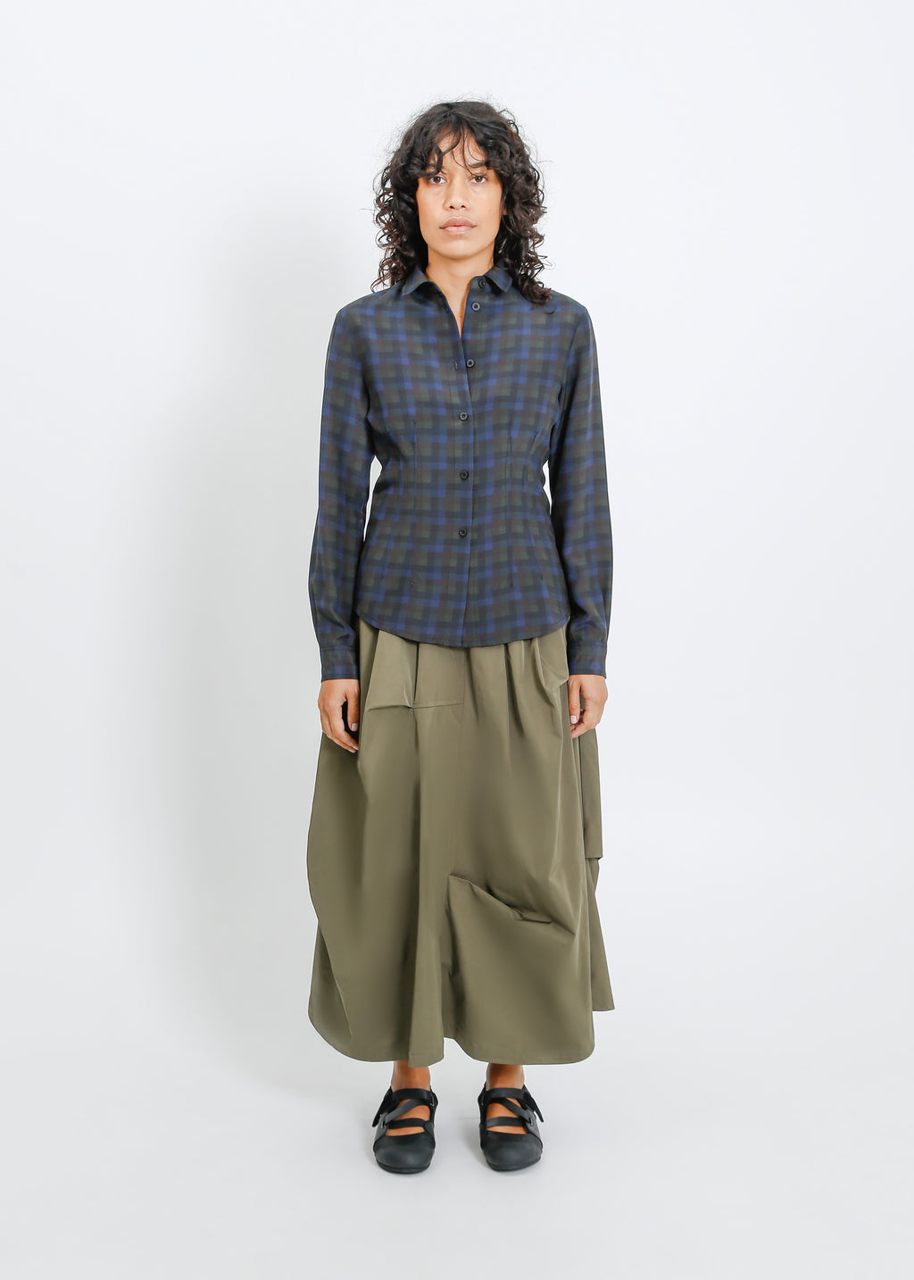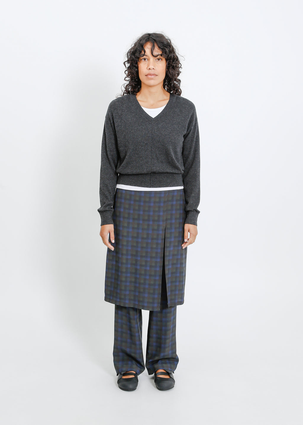 A grounded palette of moss, khaki and deep navy is warmed by fiery accents, creating a collection that feels both utilitarian and quietly striking. Deconstructed checks appear throughout, broken apart and reassembled across silhouettes so the pattern feels familiar yet subtly undone. The result is a wardrobe that balances structure with ease, where earthy tones and vivid touches of red sit together in pieces that feel considered, modern and slightly off-beat.