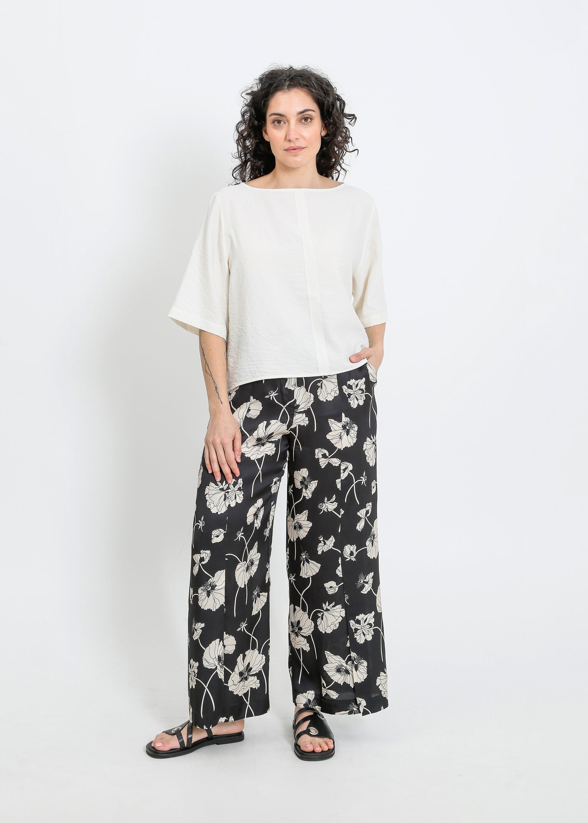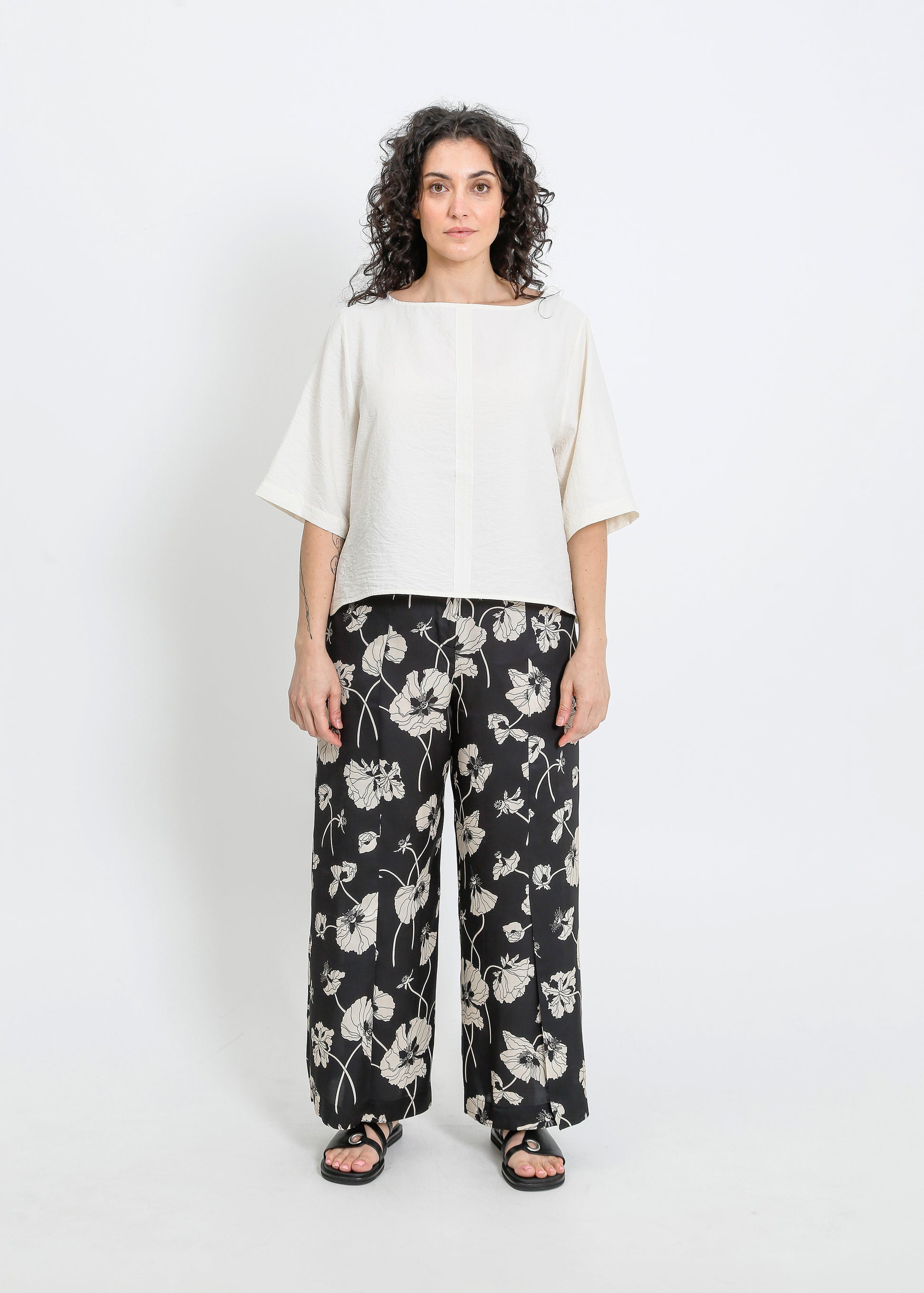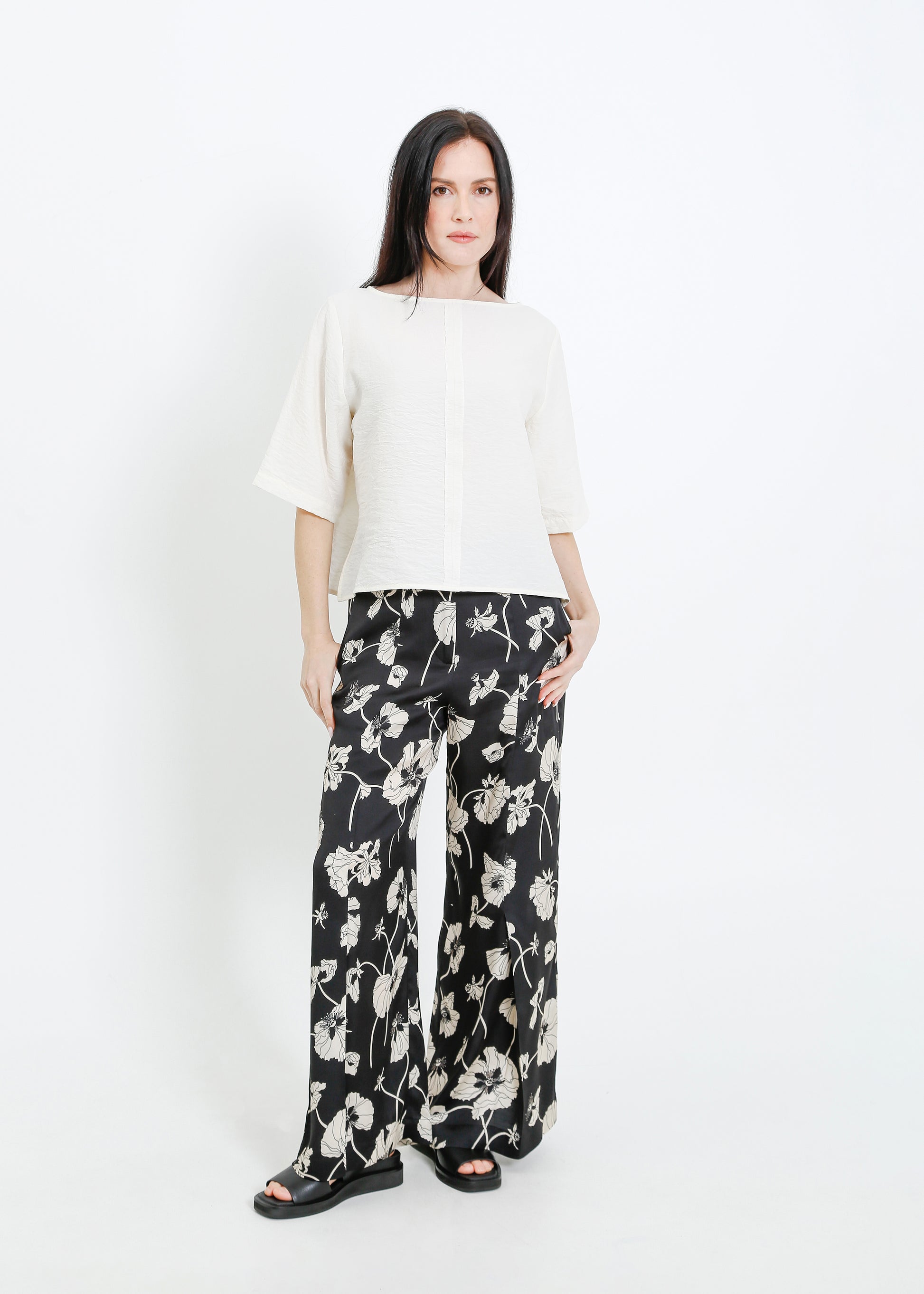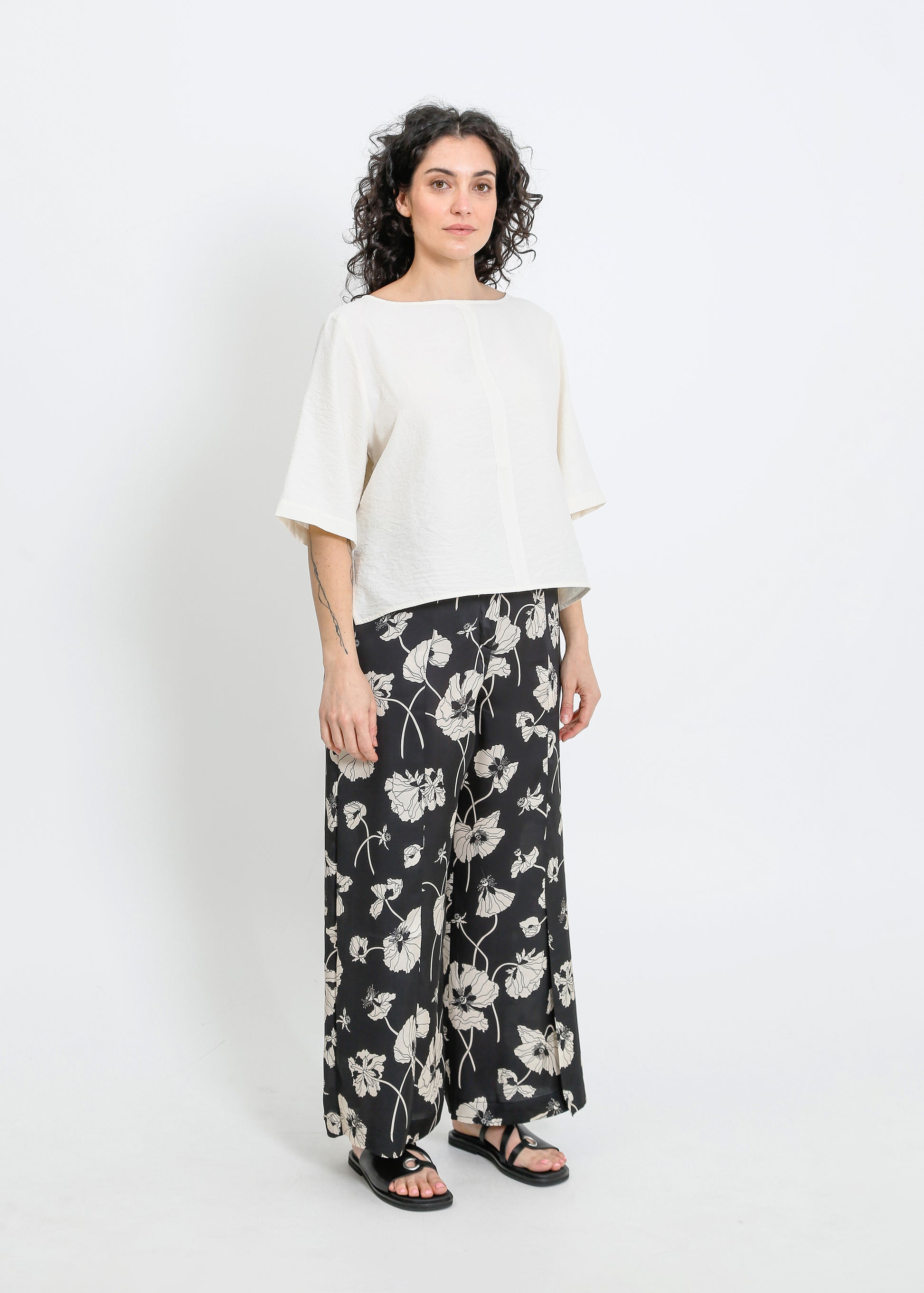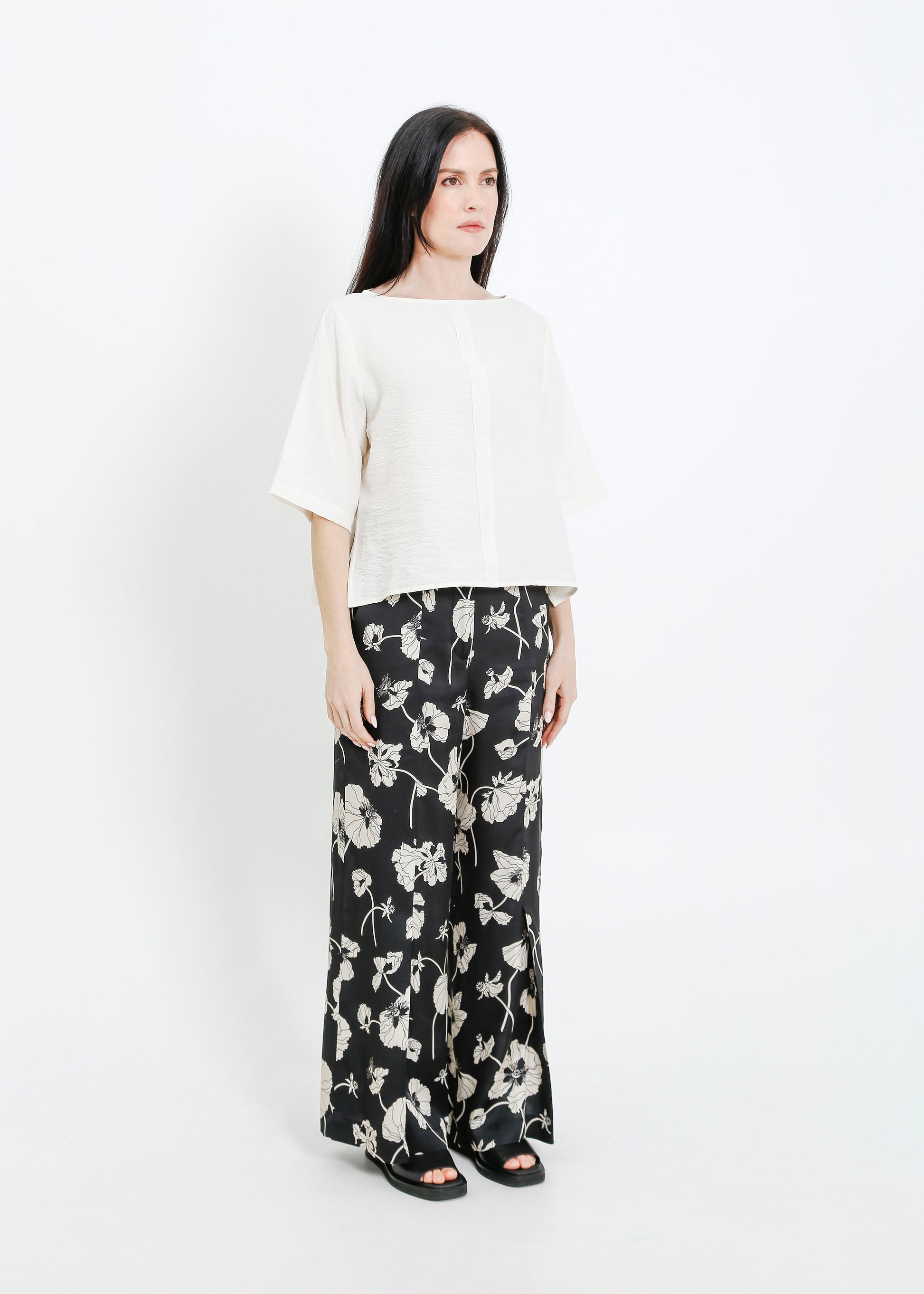 The ALPHA60 Daisy Teen is a modern take on the classic boat neck top, crafted in a cropped silhouette with intentionally frayed seams for a unique, lived-in look. The lightweight silk blend fabric drapes beautifully, making it a versatile piece for layering or wearing on its own. Designed to evolve with wear, this top will continue to develop character over time.