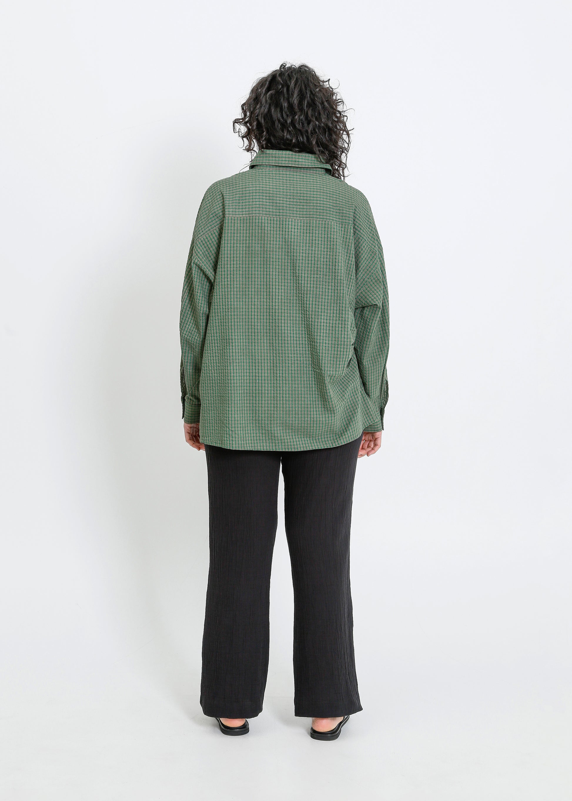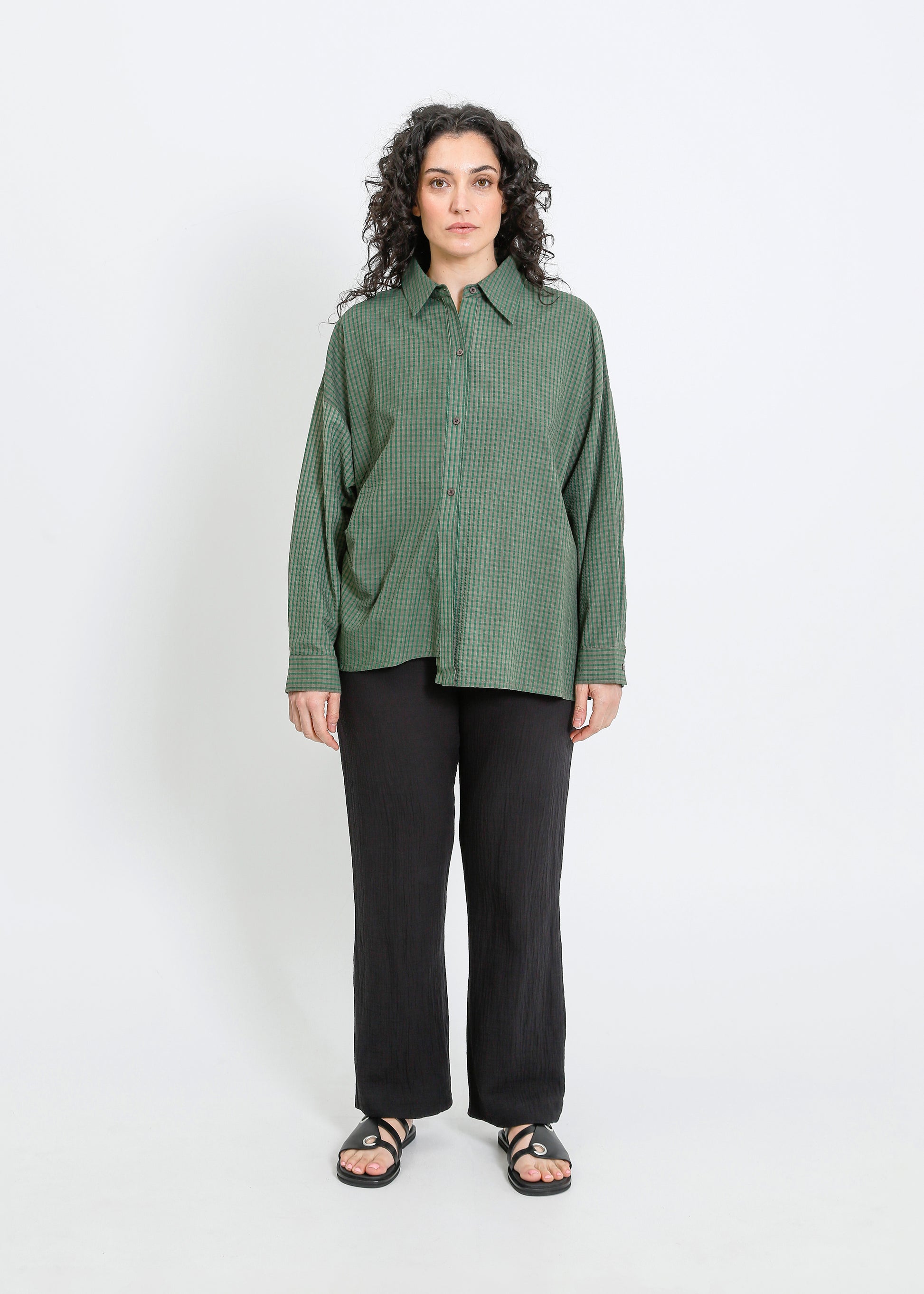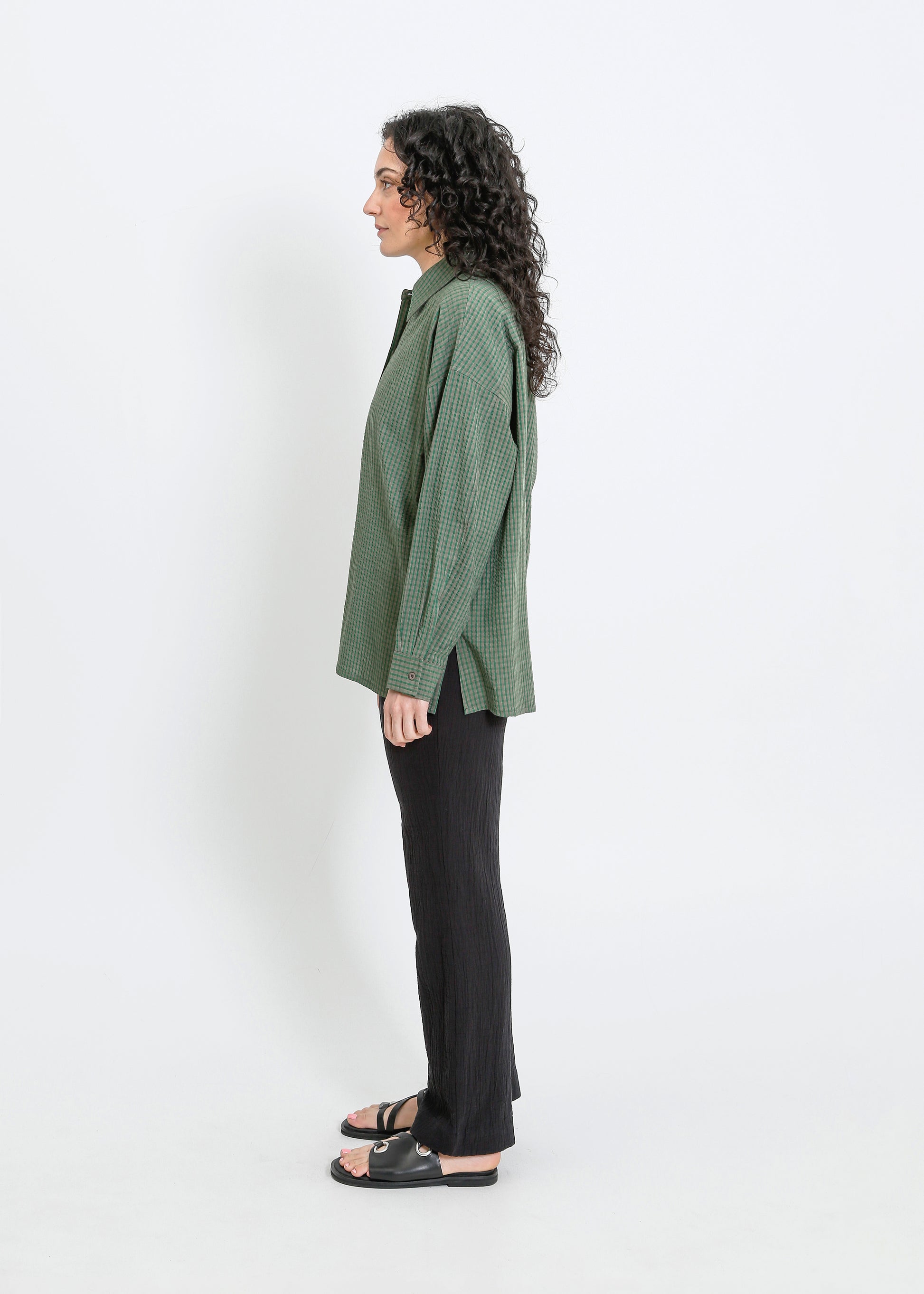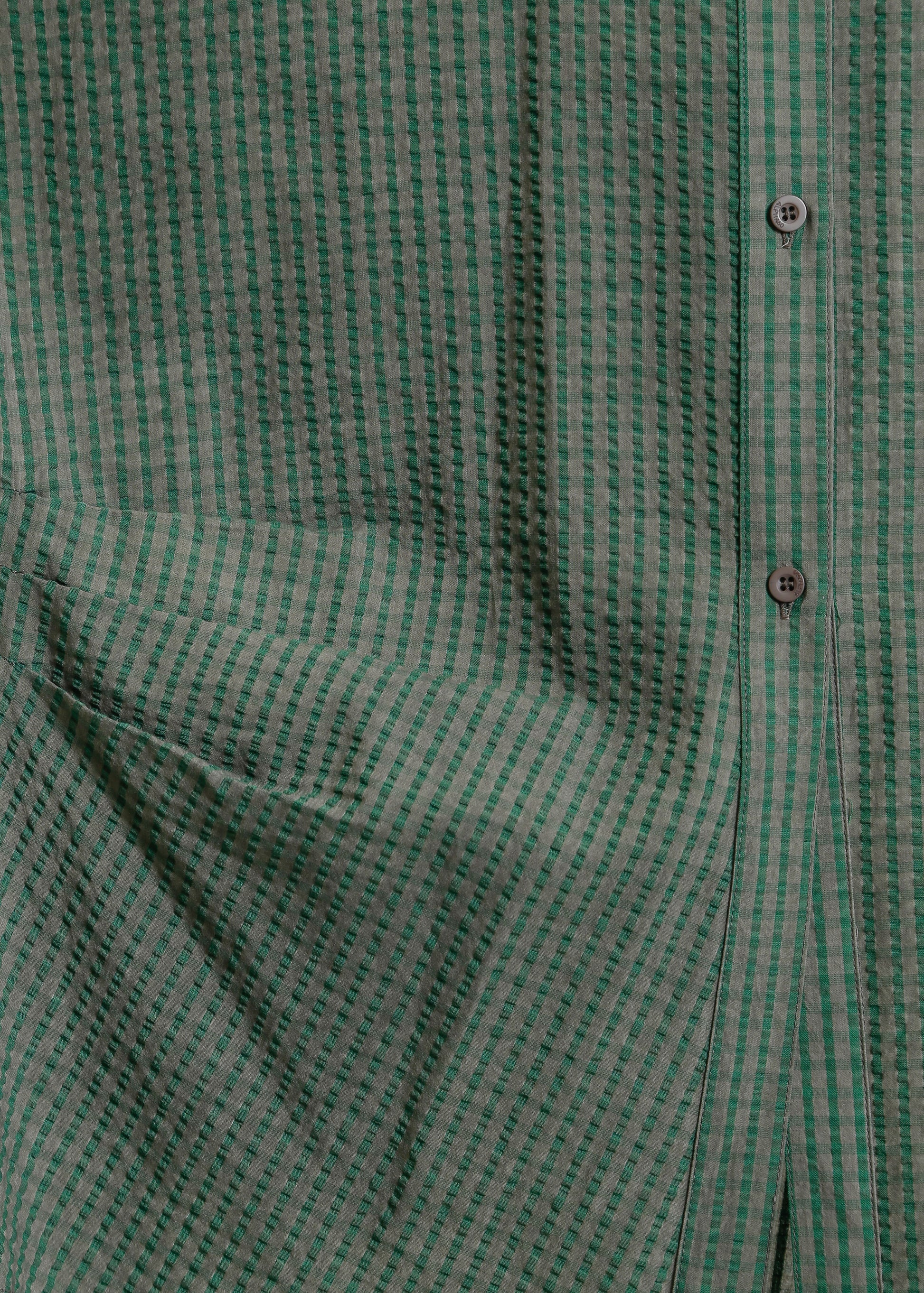 The ALPHA60 Fifer Shirt is a modern take on the classic shirt silhouette, crafted in a lightweight seersucker check fabric with a textured crinkle finish. Designed for comfort and style, this piece features a relaxed, oversized fit and unique detailing, making it a versatile addition to your wardrobe.