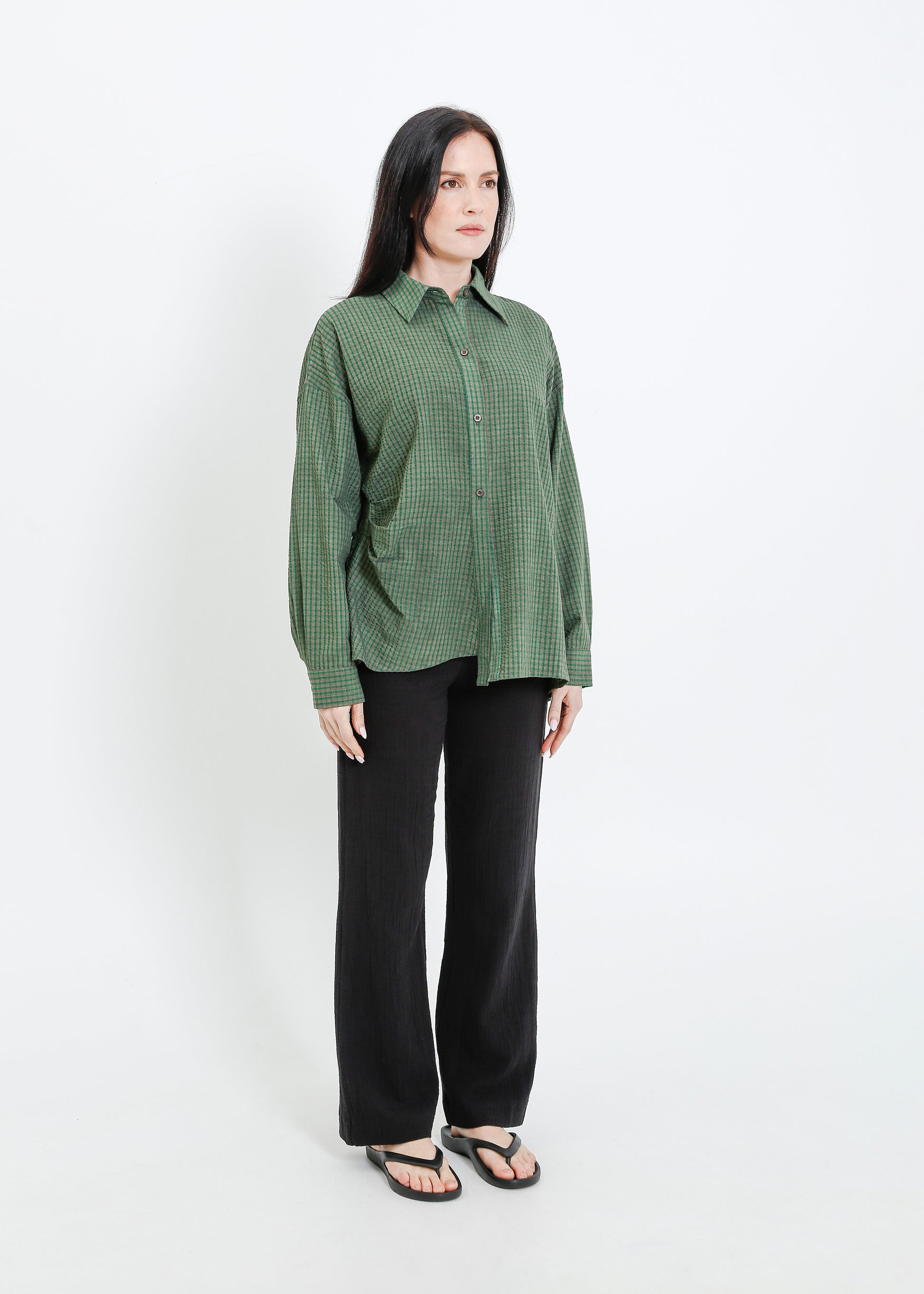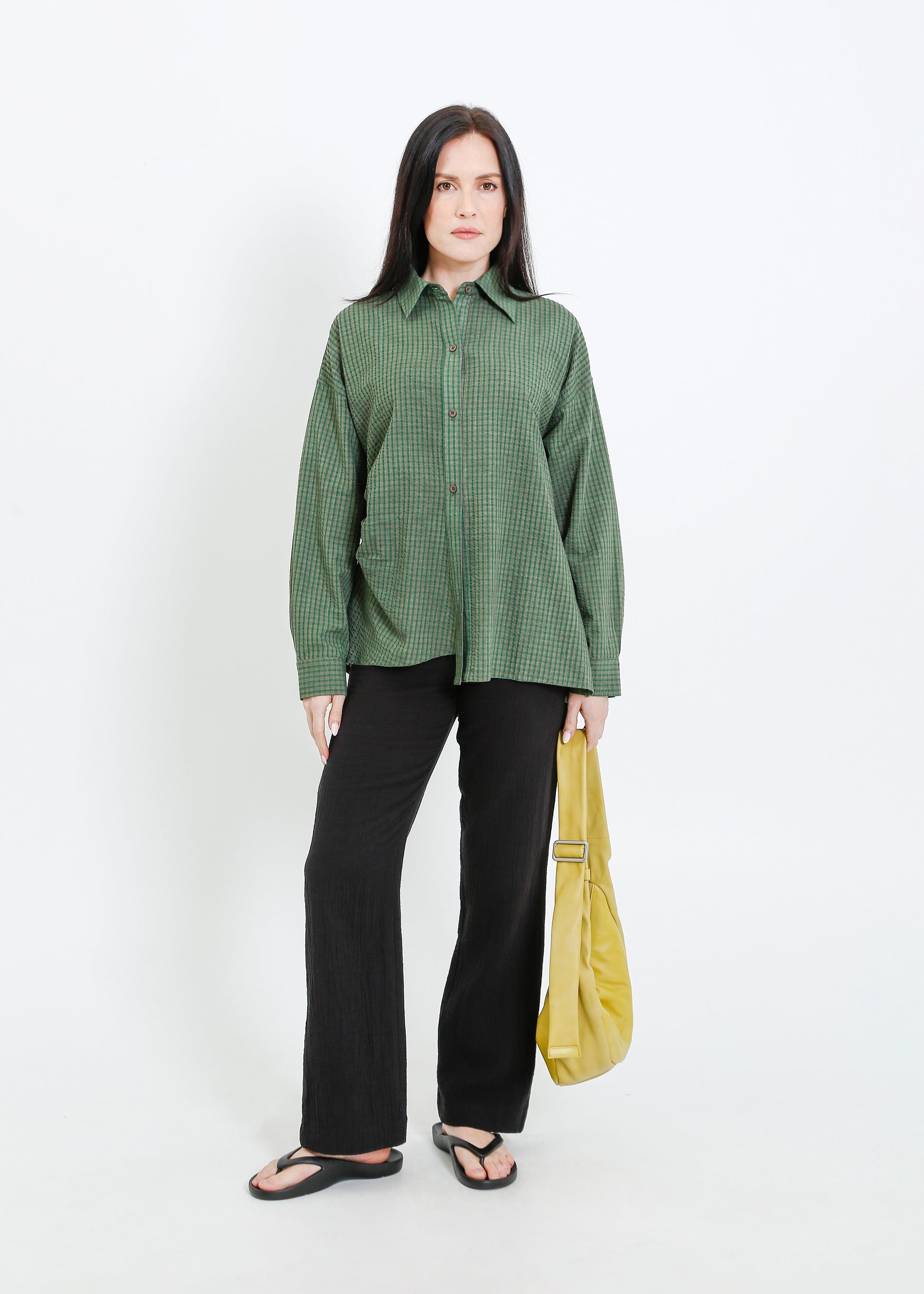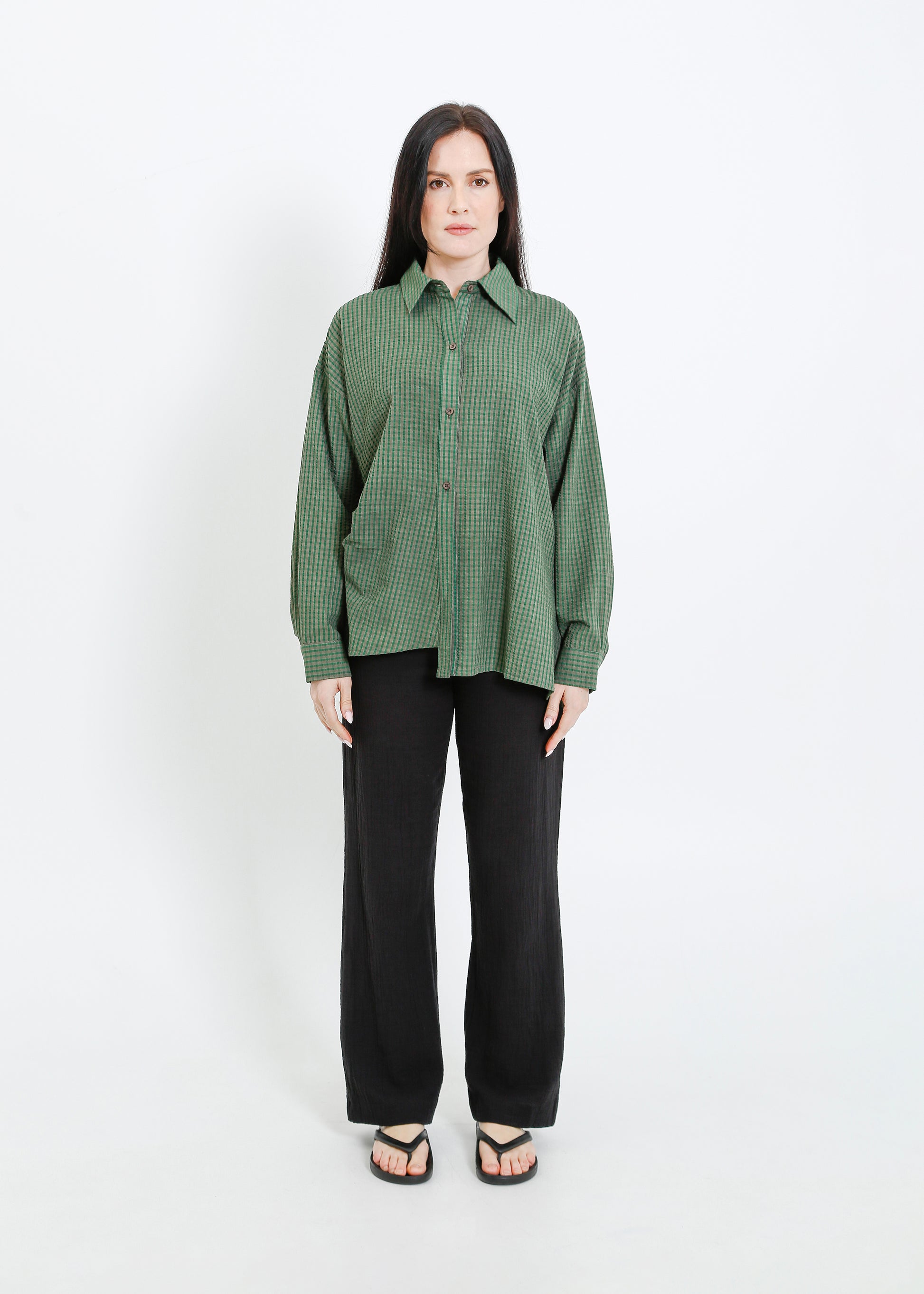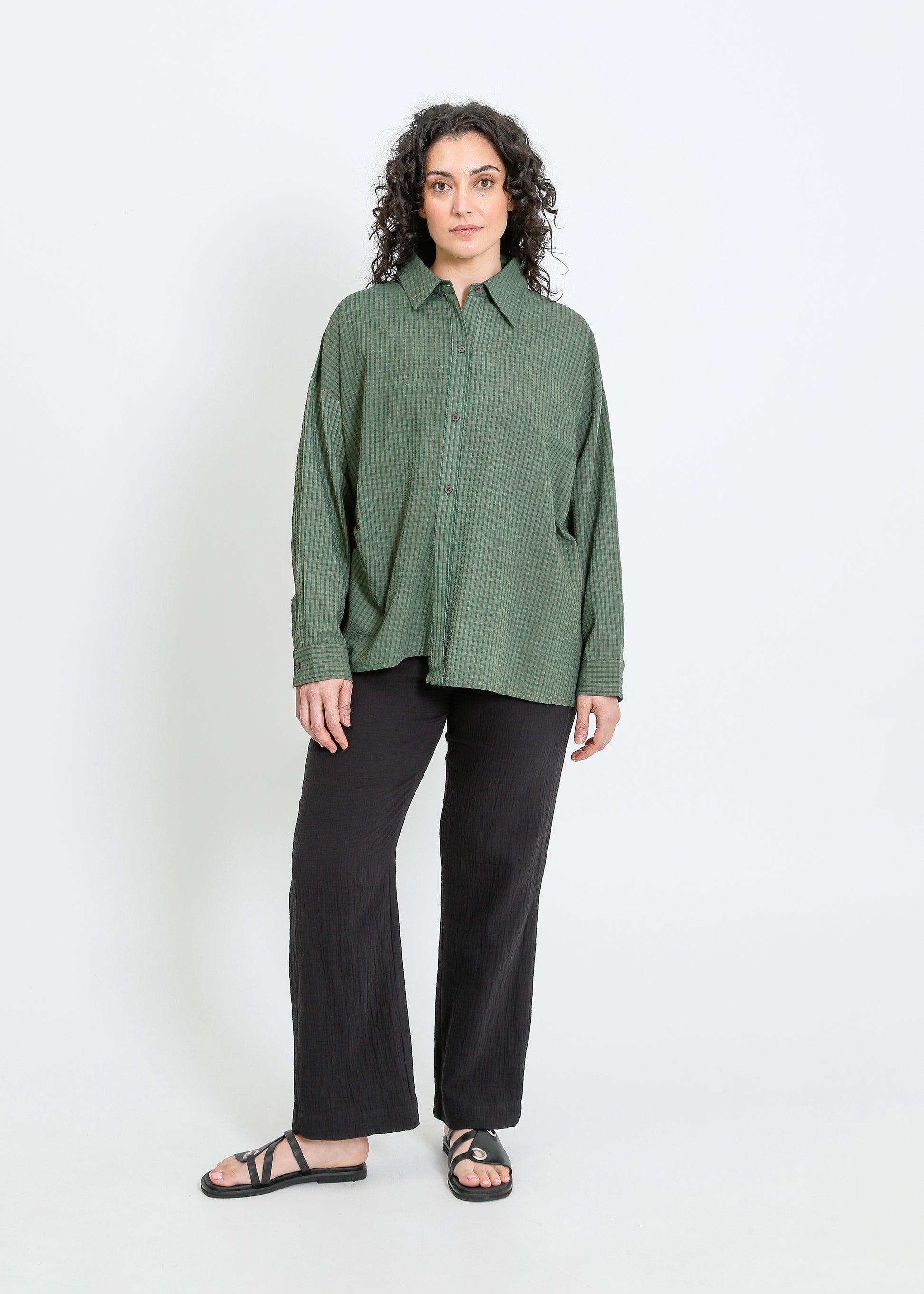 The ALPHA60 Fifer Shirt is a modern take on the classic shirt silhouette, crafted in a lightweight seersucker check fabric with a textured crinkle finish. Designed for comfort and style, this piece features a relaxed, oversized fit and unique detailing, making it a versatile addition to your wardrobe.