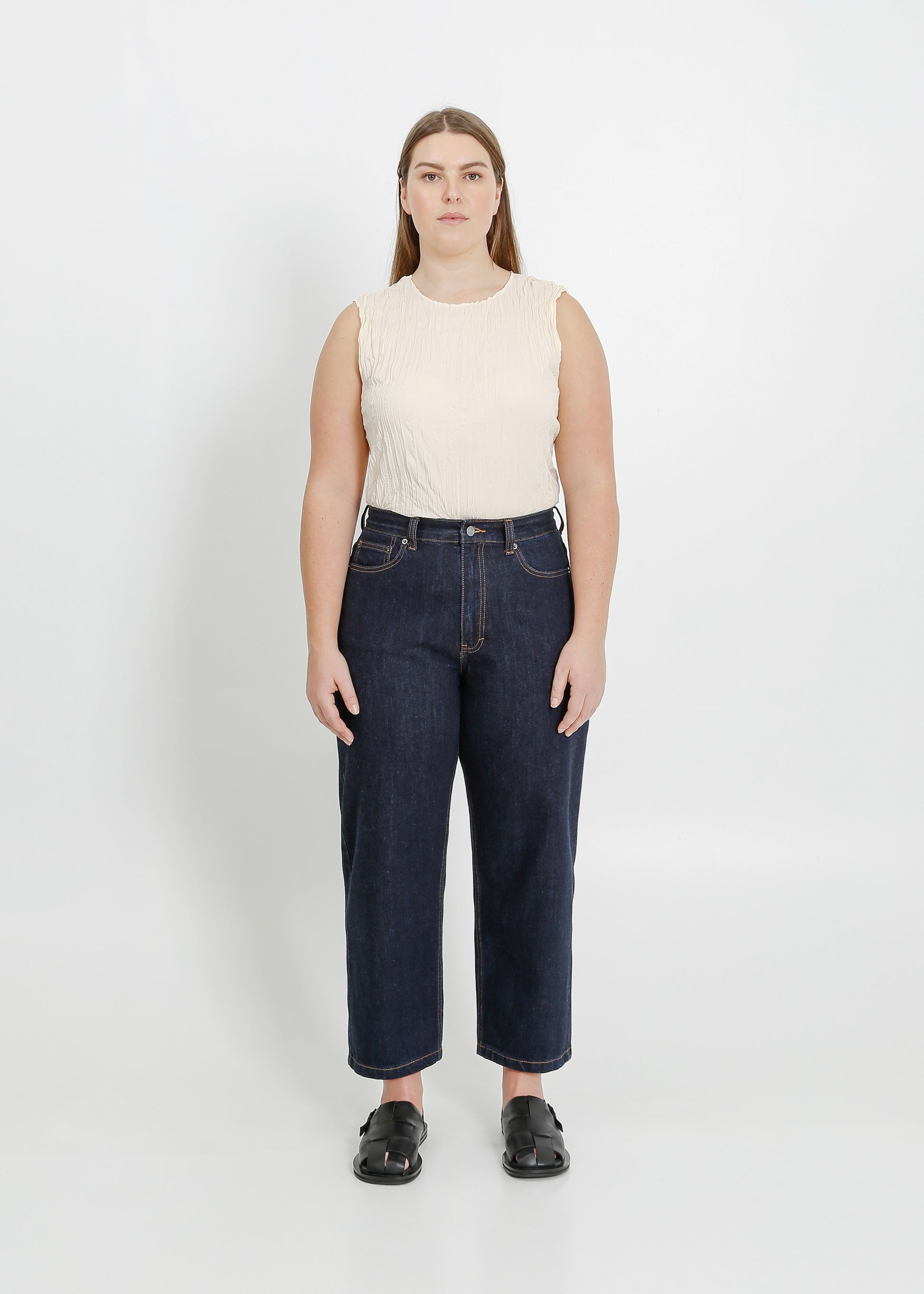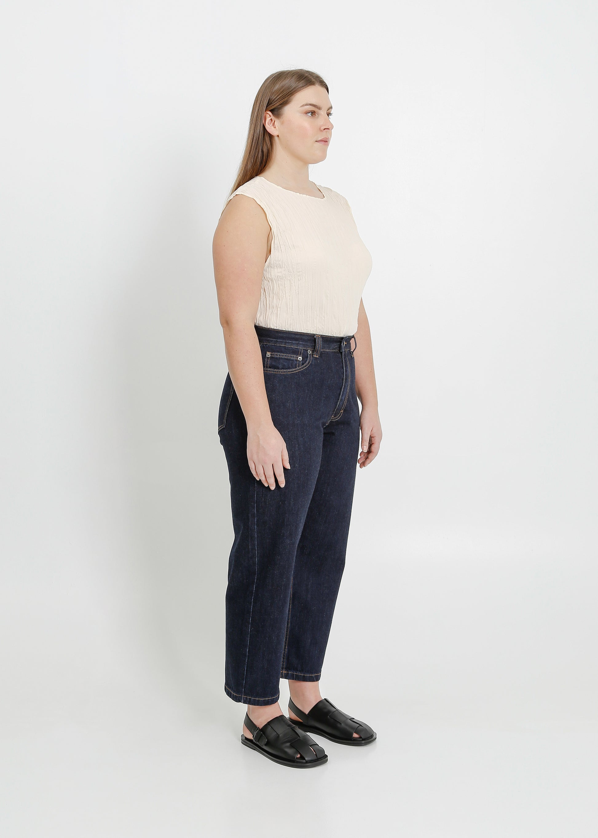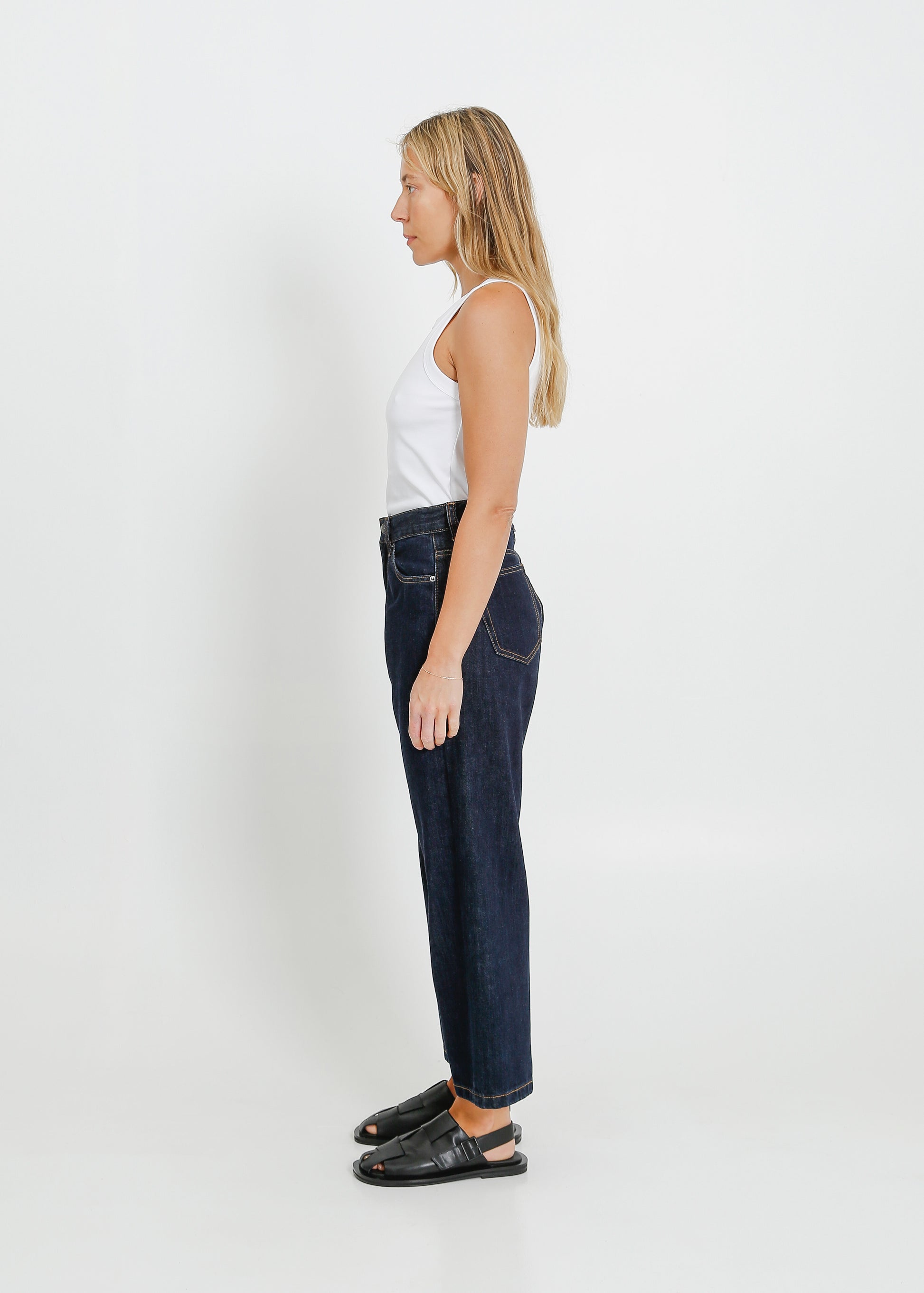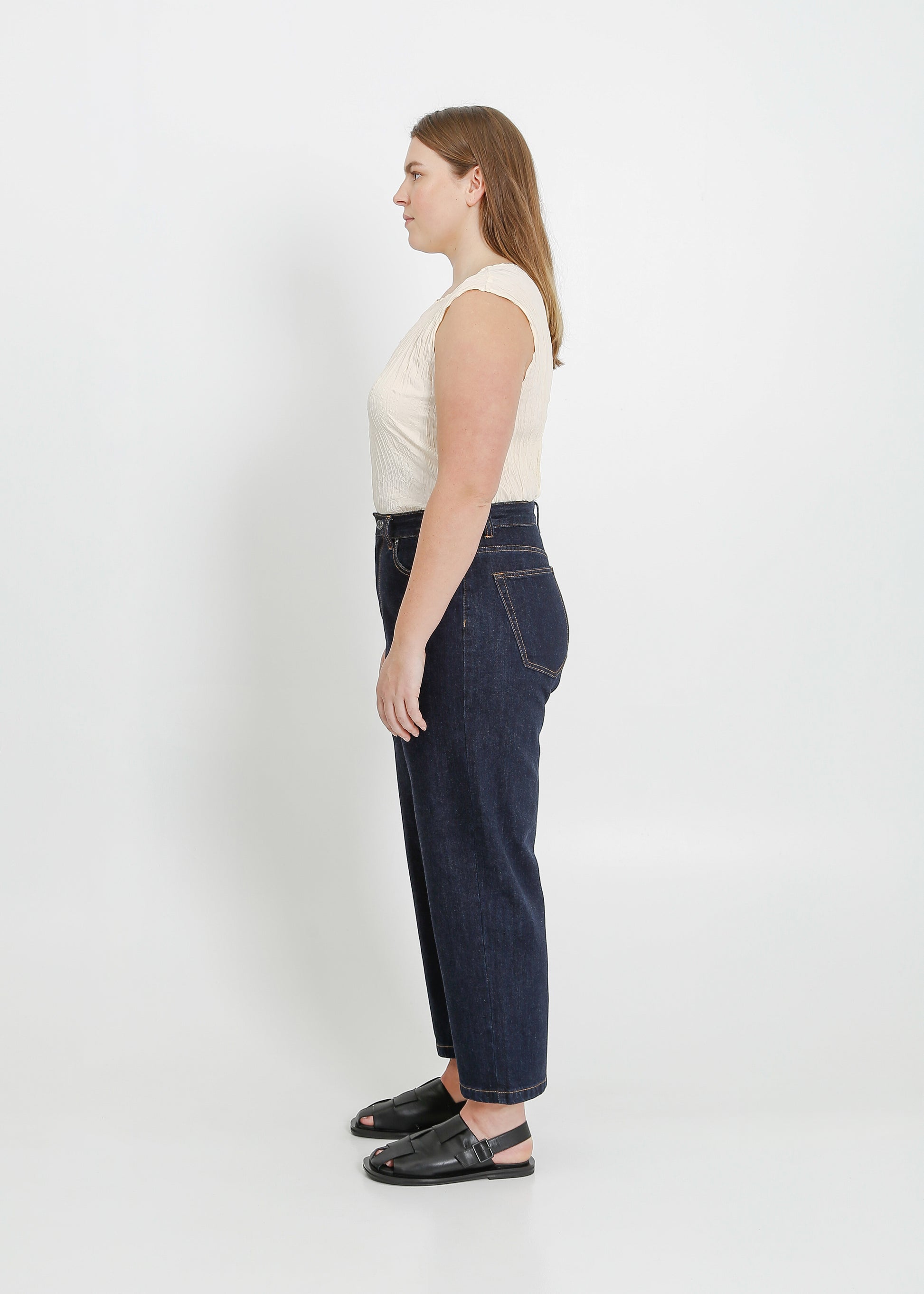 - Straight cropped leg profile