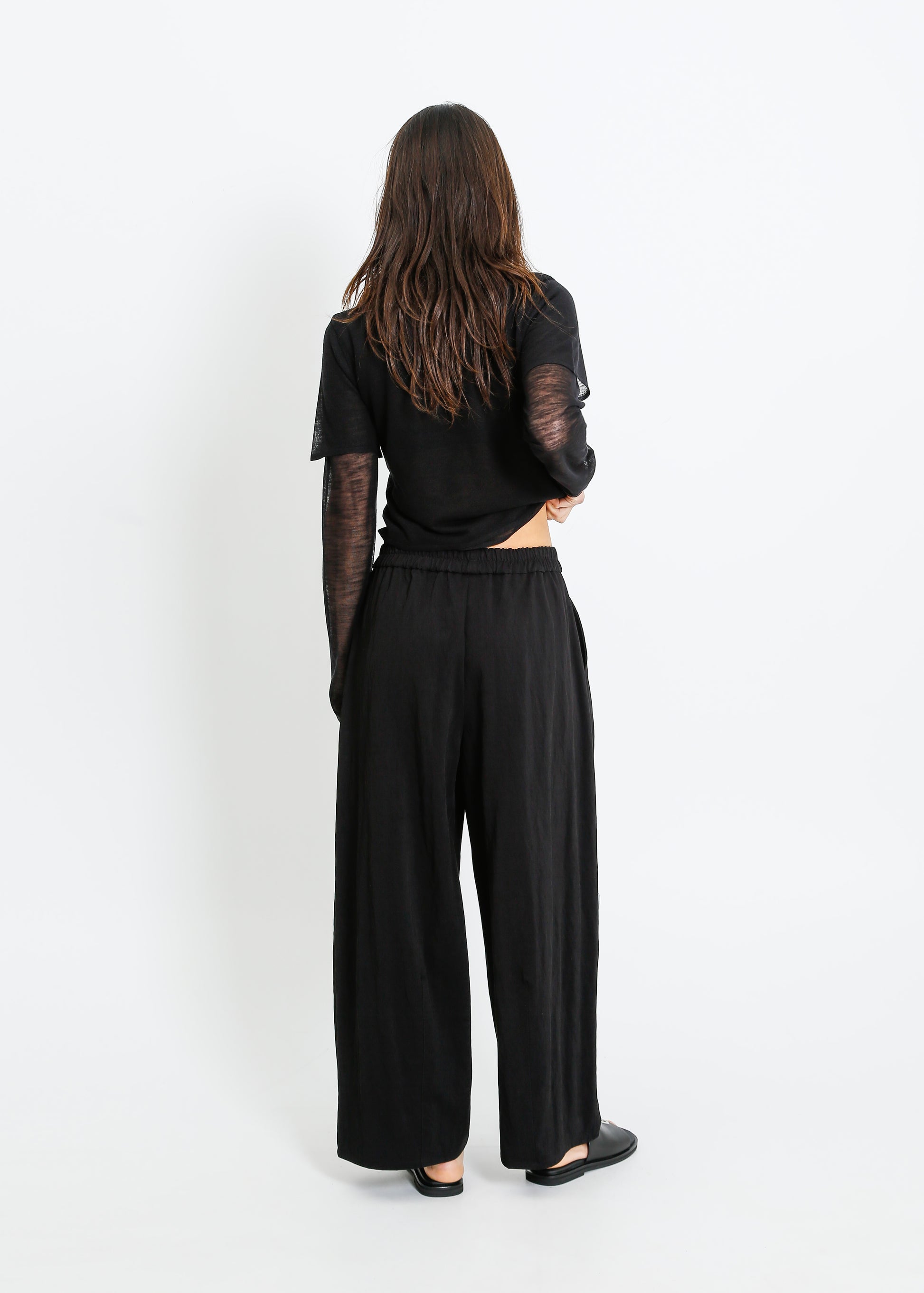 The ALPHA60 Halen Pant is a modern essential, designed for comfort and effortless style. Featuring a cocoon silhouette and an easy elasticated waistband, these pants are perfect for everyday wear. The ankle length and high rise create a flattering shape, while the soft, drapey fabric ensures all-day comfort. Dress them up or down for versatile styling options.