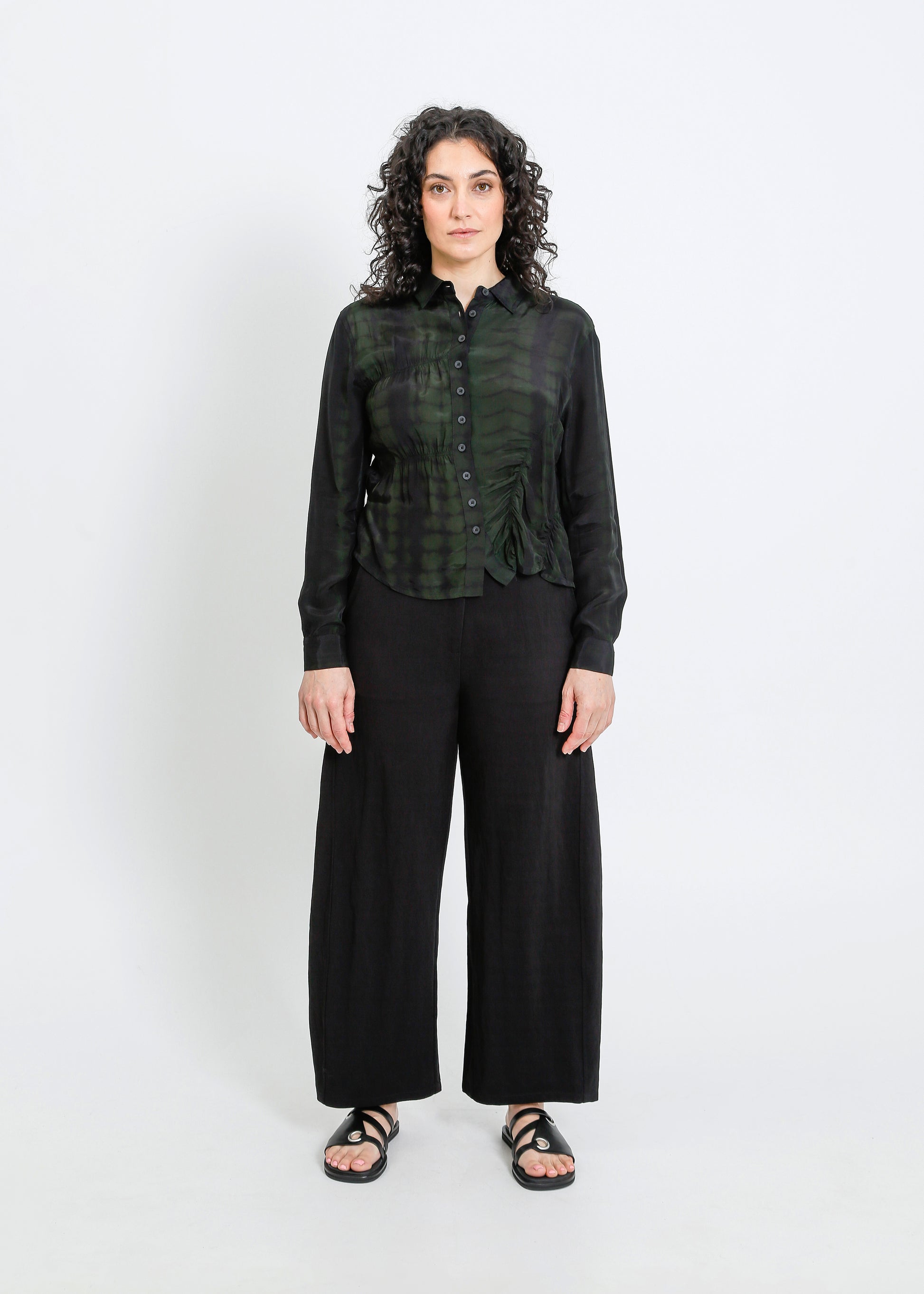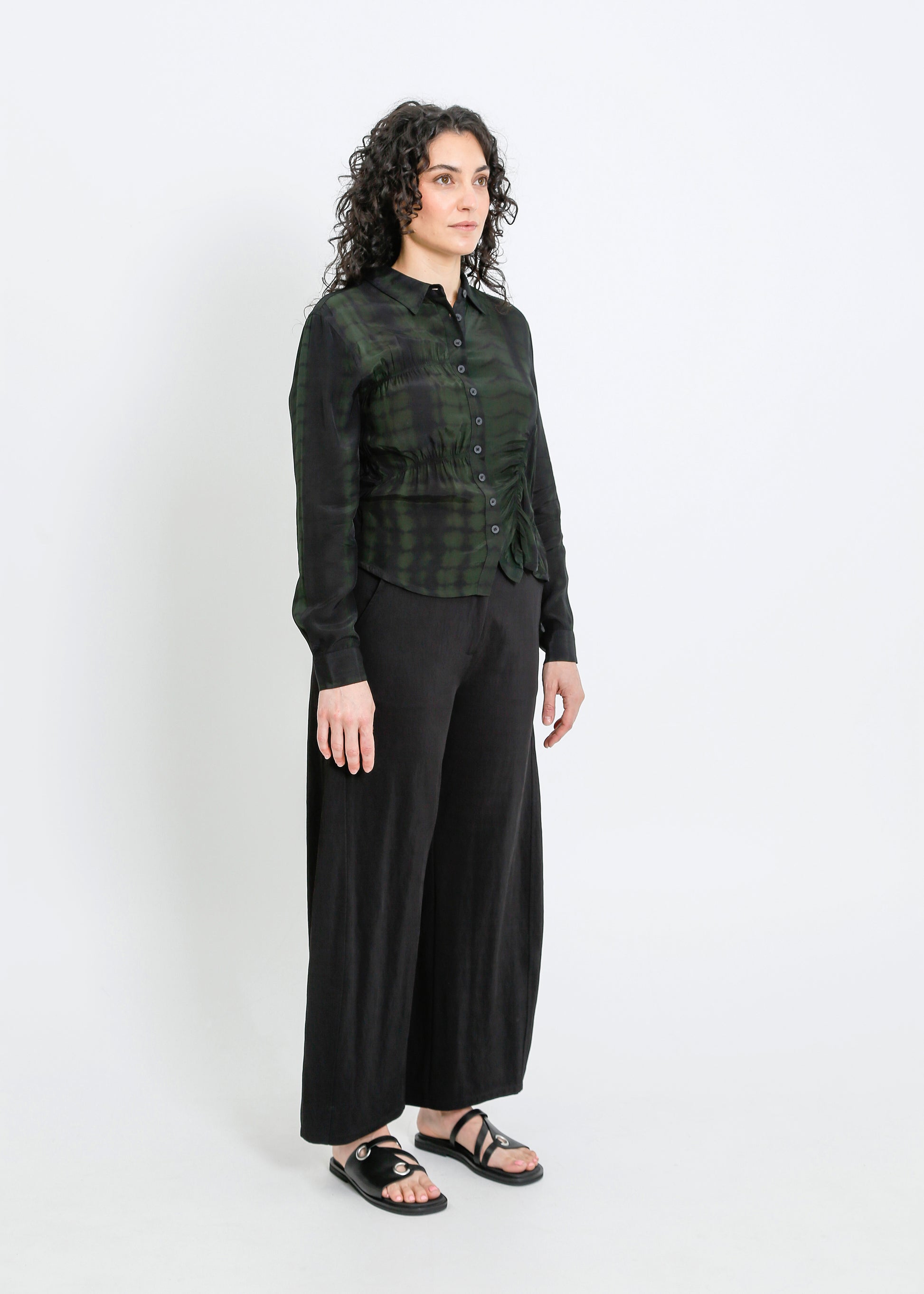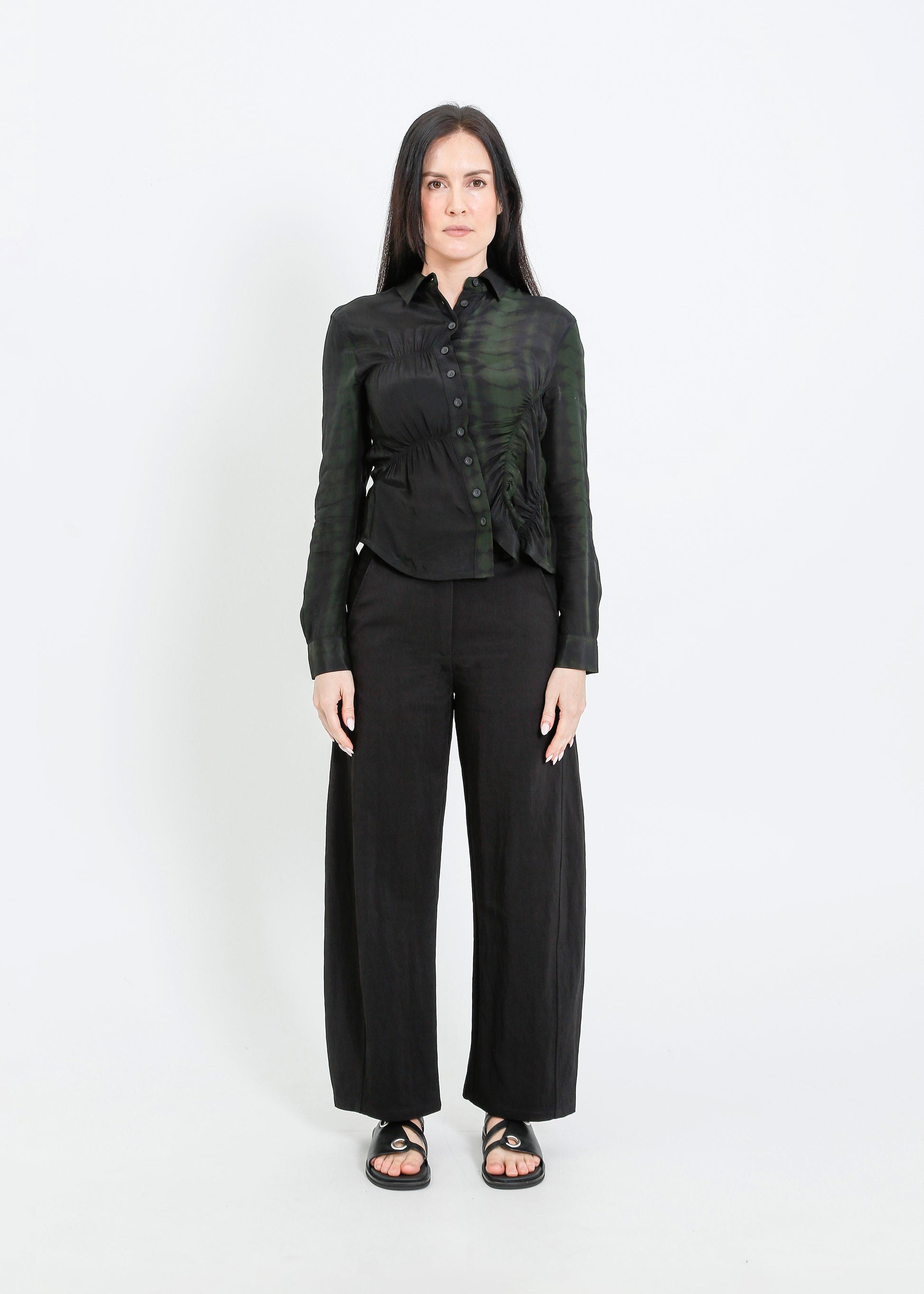 The ALPHA60 Harding Blousen is a modern take on the classic shirt, featuring shirred asymmetric design lines throughout the front and back body. Crafted for a sleek silhouette, this piece brings a unique edge to your wardrobe while maintaining a refined, versatile look.