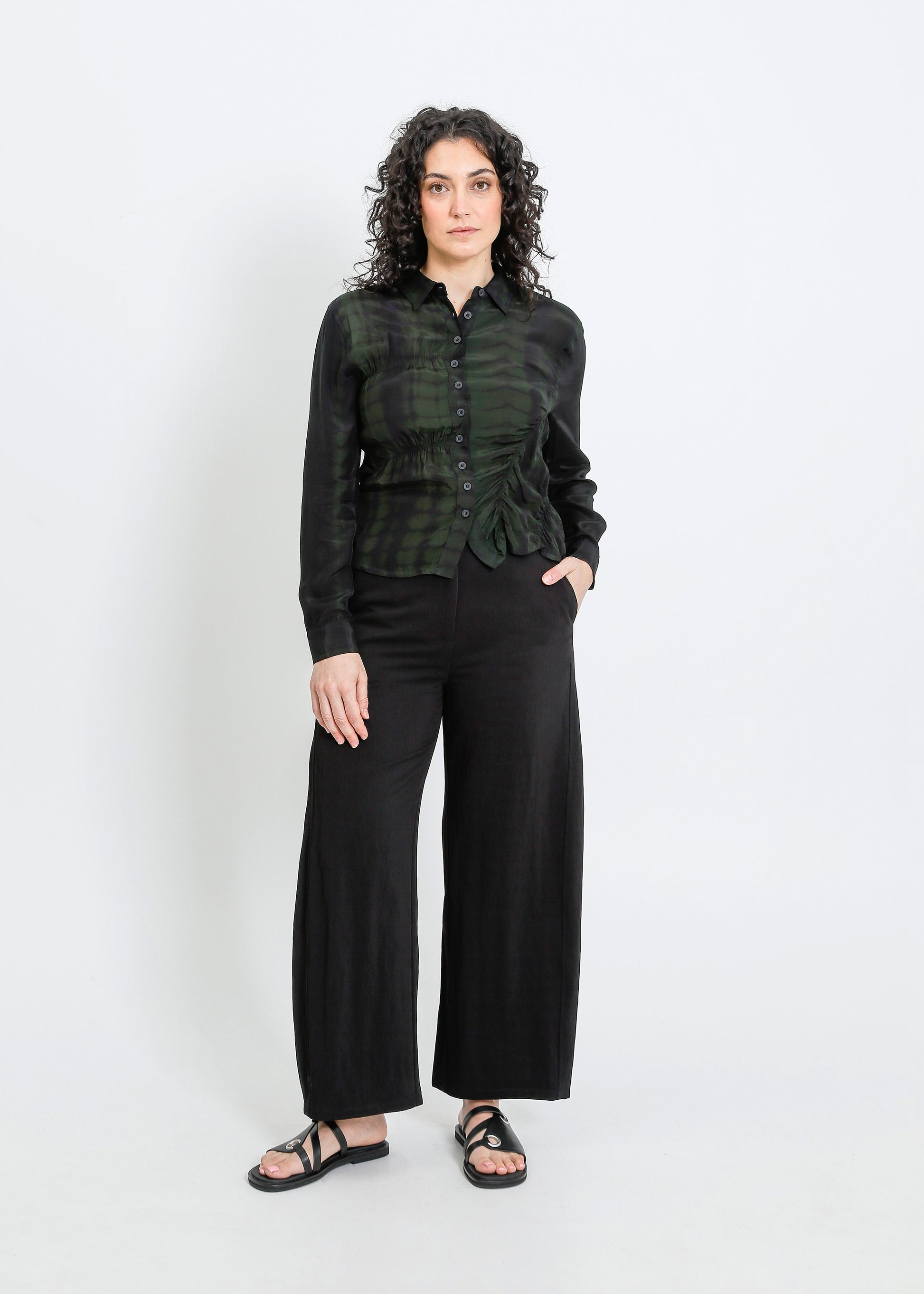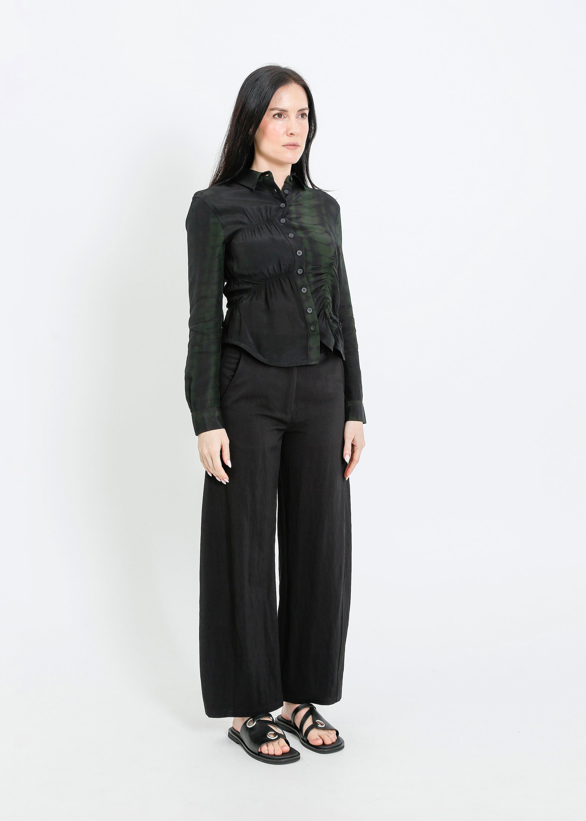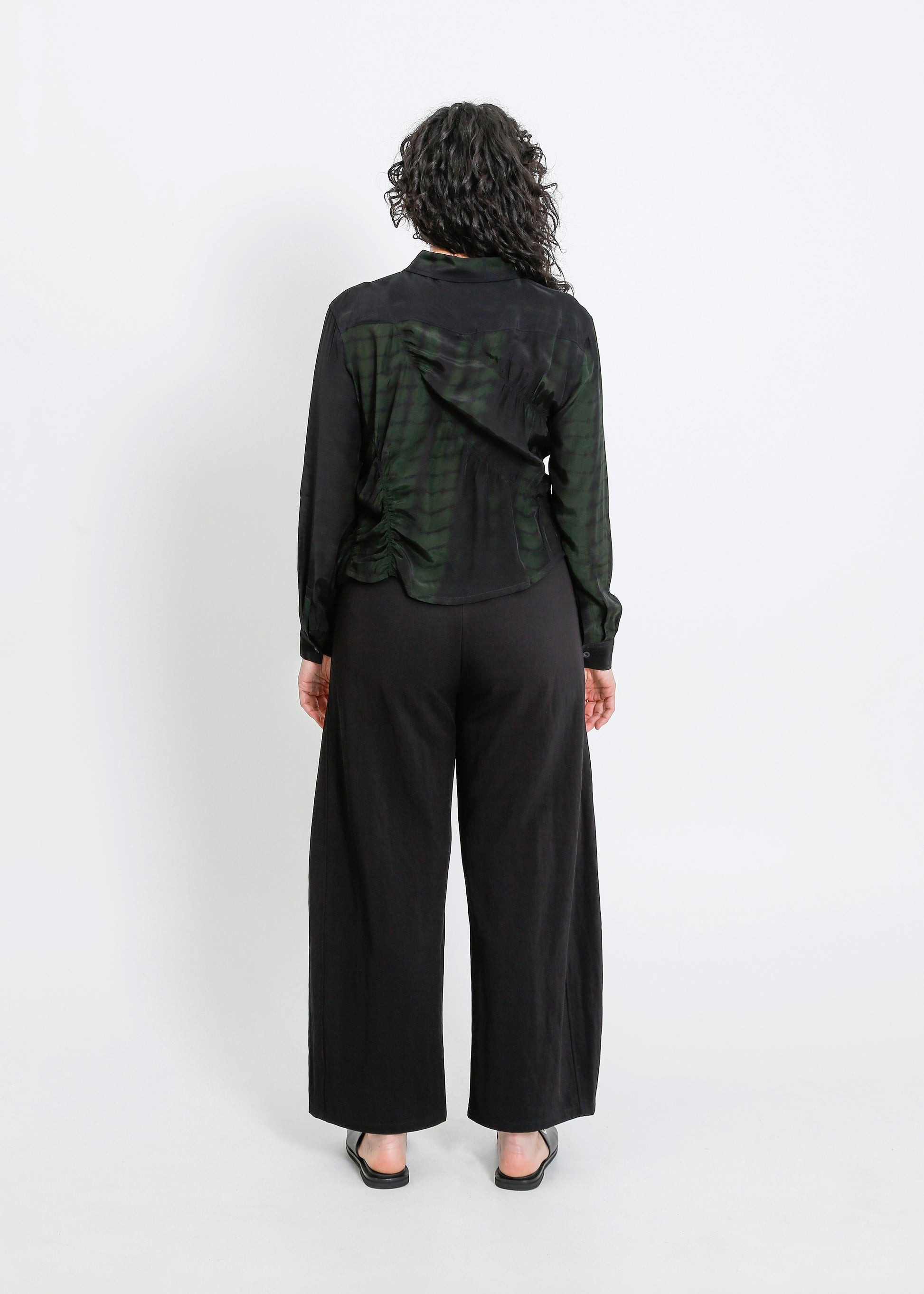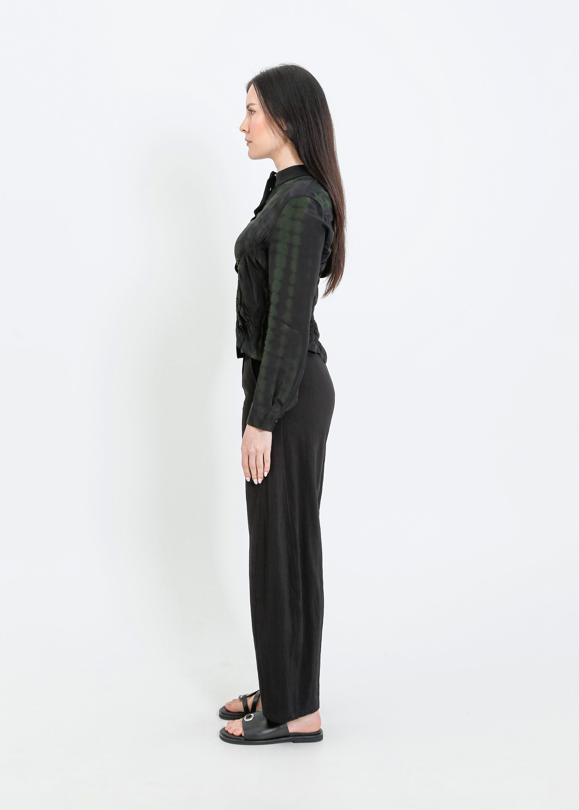The ALPHA60 Harding Blousen is a modern take on the classic shirt, featuring shirred asymmetric design lines throughout the front and back body. Crafted for a sleek silhouette, this piece brings a unique edge to your wardrobe while maintaining a refined, versatile look.